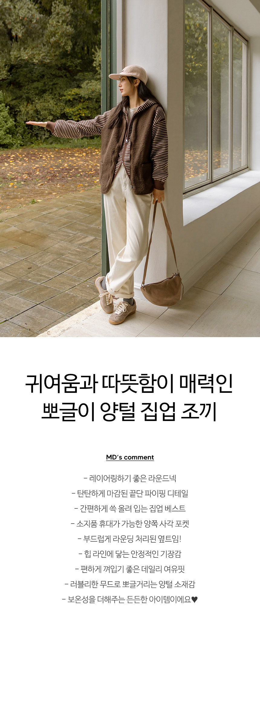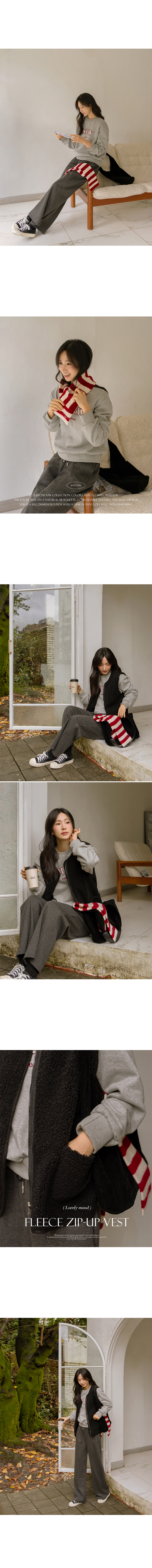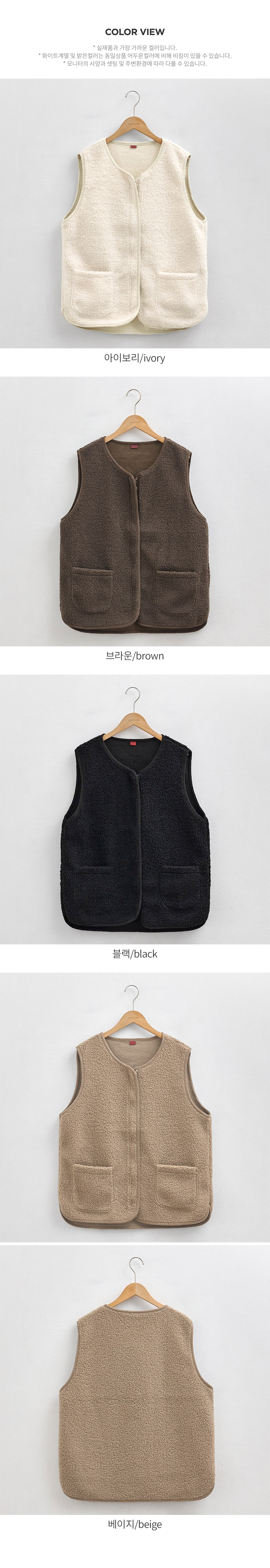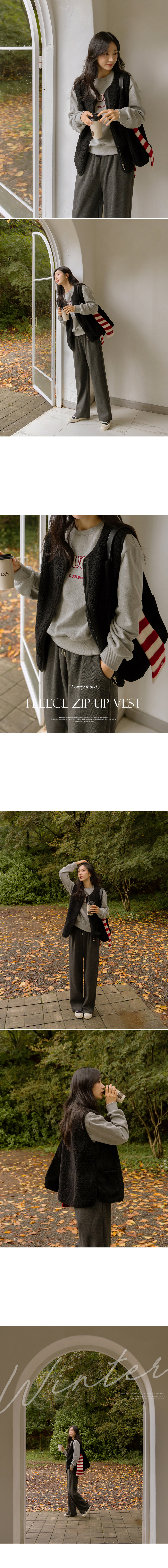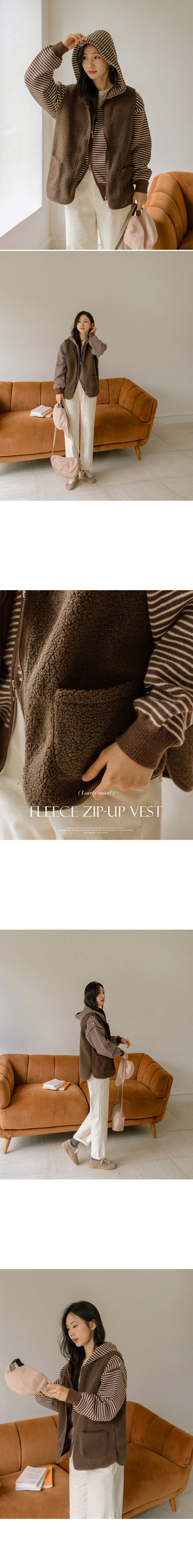This zip-up vest is made of fluffy fleece material that feels cute and warm at the same time. It has a loose fit so it's comfortable to wear, and it'll be a reliable item that adds warmth to the winter season!