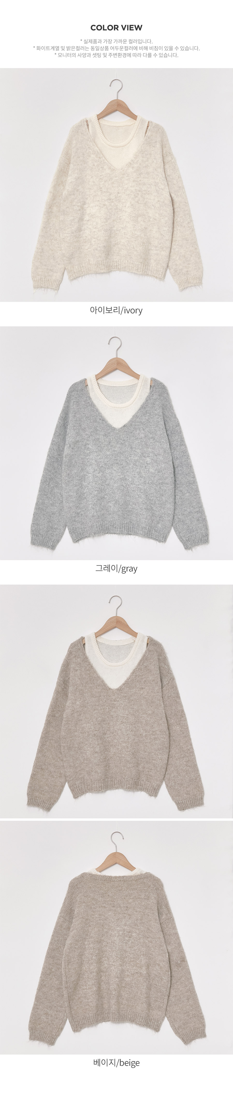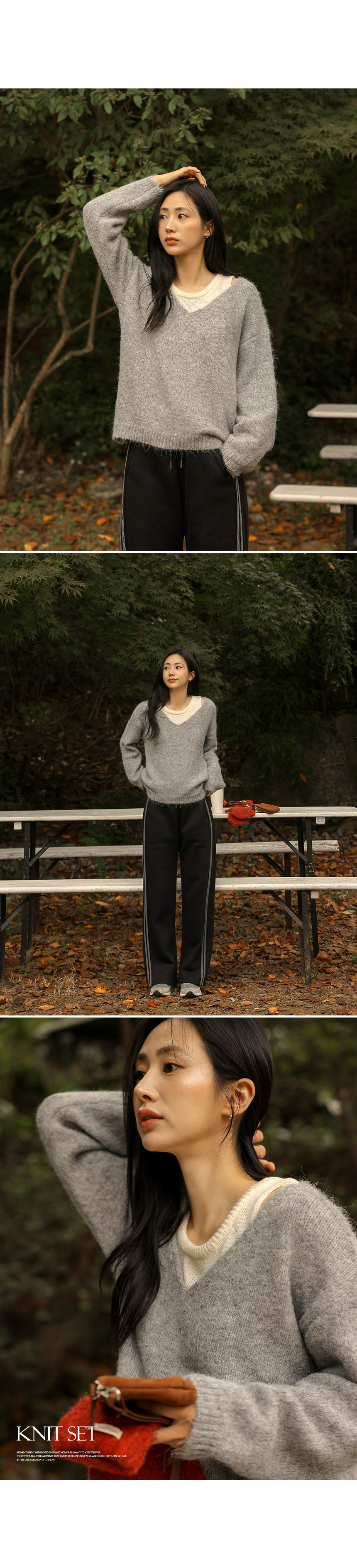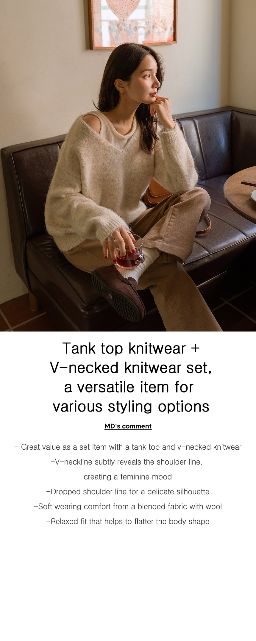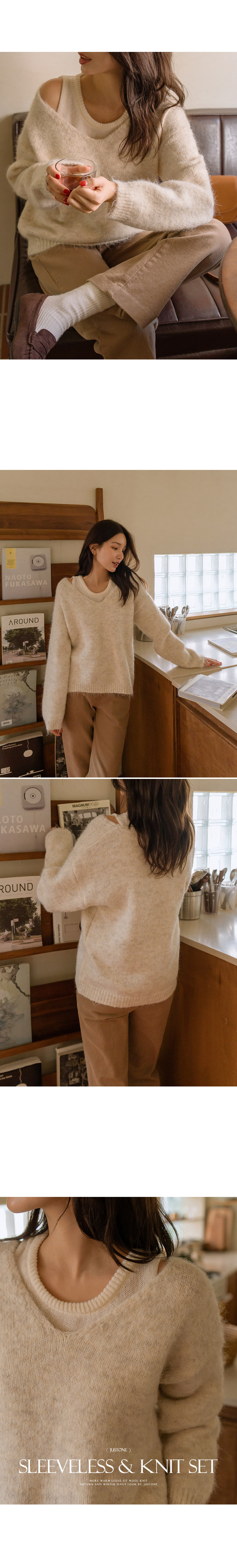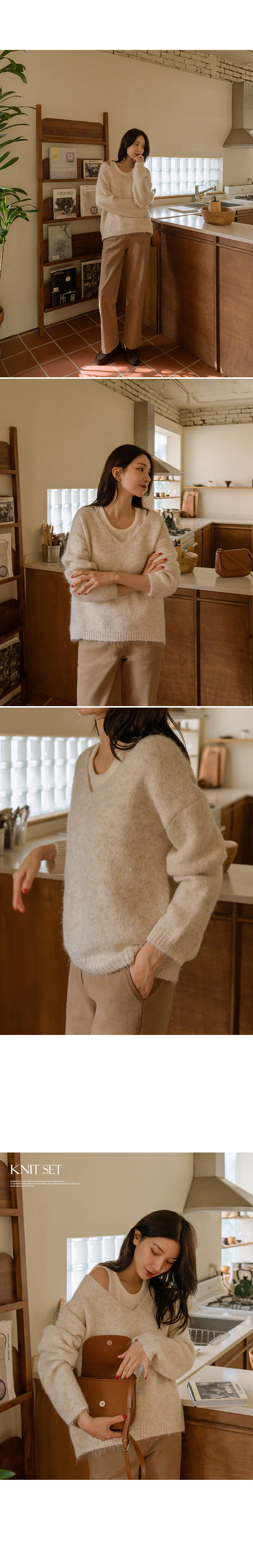 4DA30560NN_V-necked Knitwear+Layered Tank Top Knit Set
