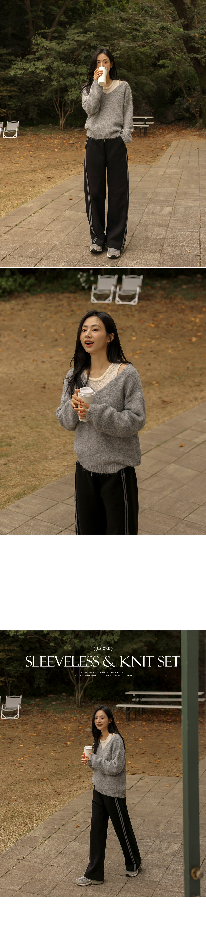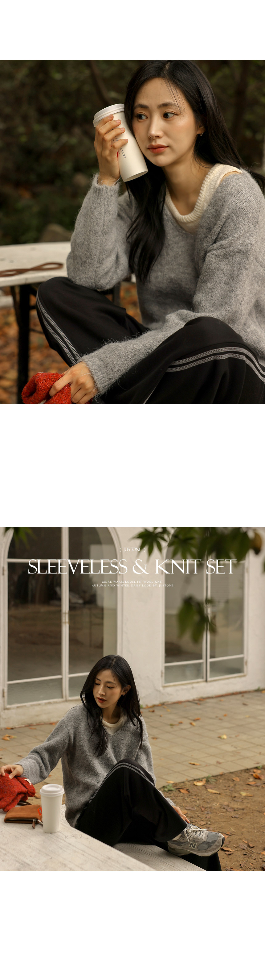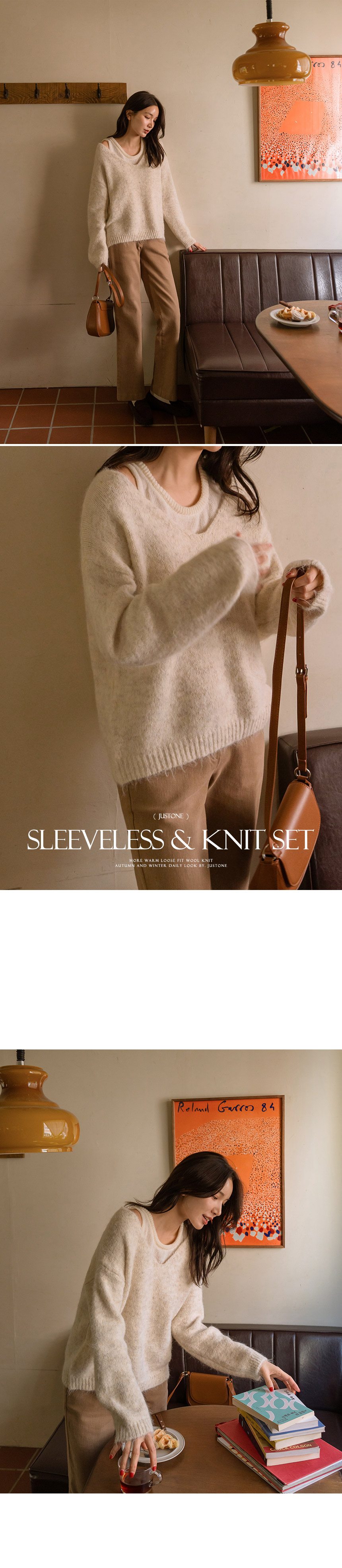 This is a highly-versatile knit set consisting of a sleeveless top and knitwear. The loose-fit design creates a slender silhouette while providing a comfortable fit.