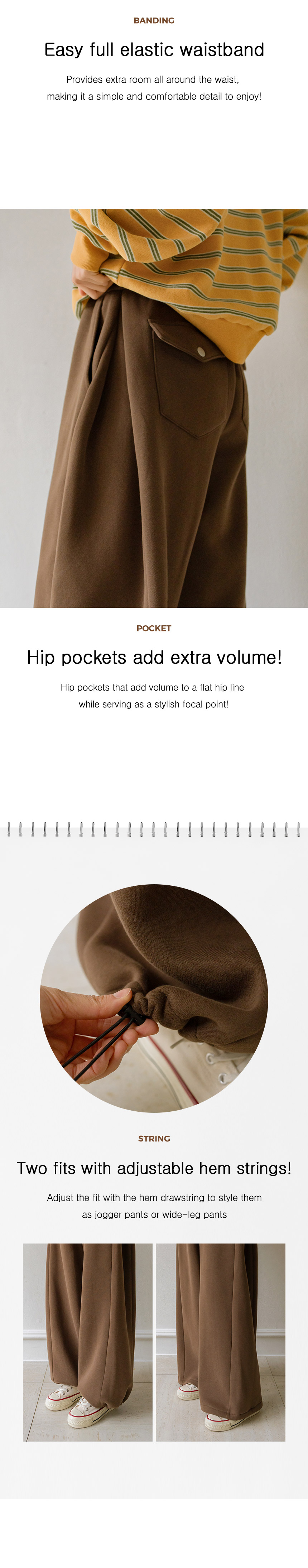 Add a touch of cool to your casual style with these brushed banded pants! Featuring side tucks at the waist for a relaxed silhouette, and a drawstring hem that lets you switch between two looks of jogger and wide-leg.