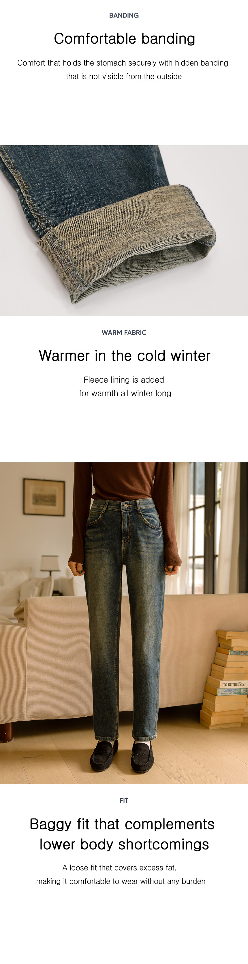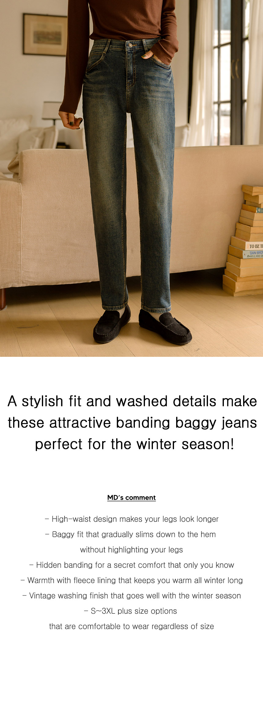These baggy-fit denim jeans offer a comfortable fit that doesn’t cling to your legs! Featuring a vintage wash and cozy fleece lining, they’re perfect for staying warm and stylish all winter long.