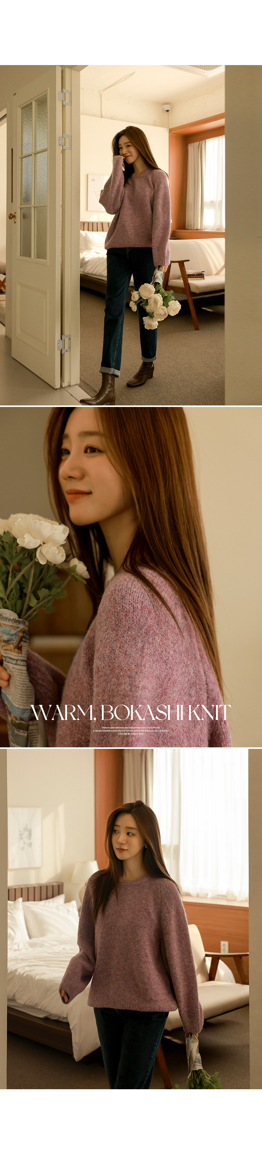 This loose-fit knitwear offers exceptional comfort. Made with a cashmere-blend fabric, it keeps you warm while feeling incredibly soft to the touch. The elegant gradient weave adds a subtle, feminine charm.