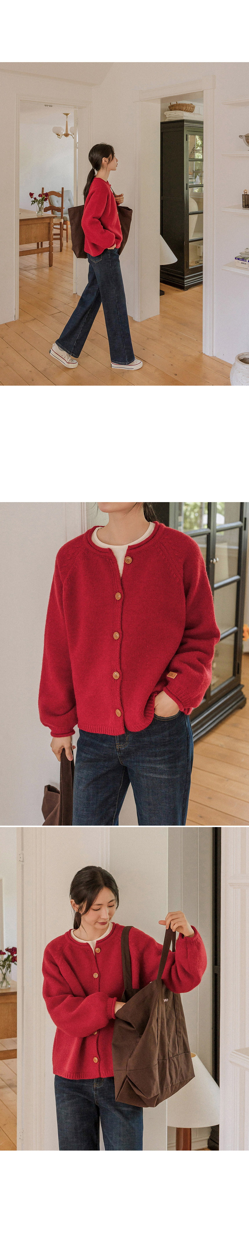 4DA32080JJ_Leather Label Balloon Sleeve Knit Cardigan