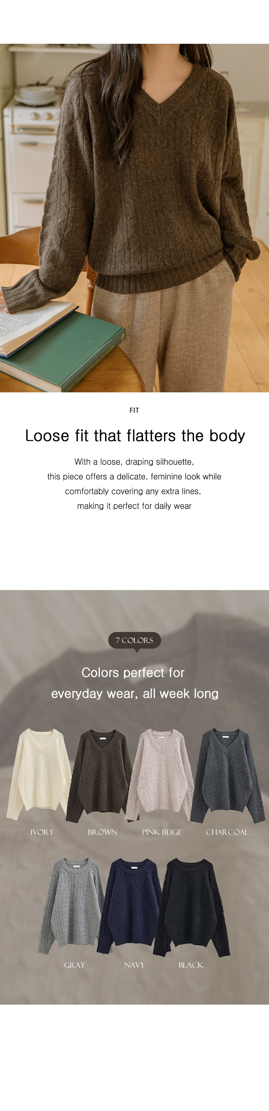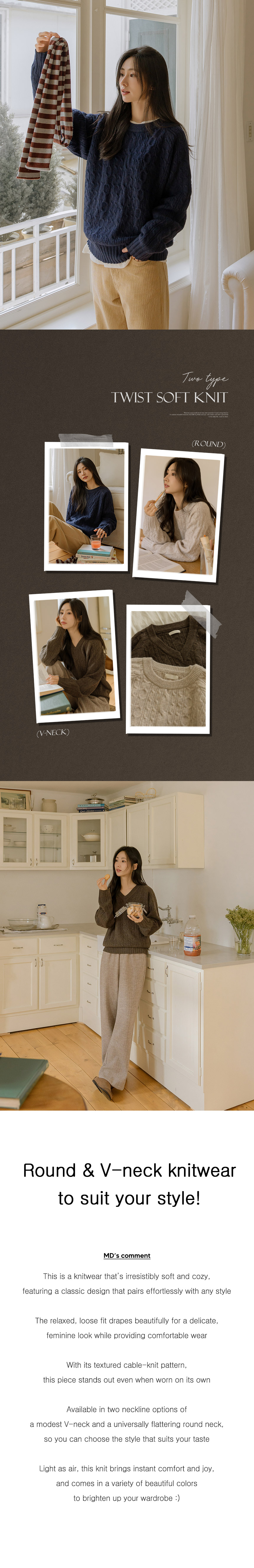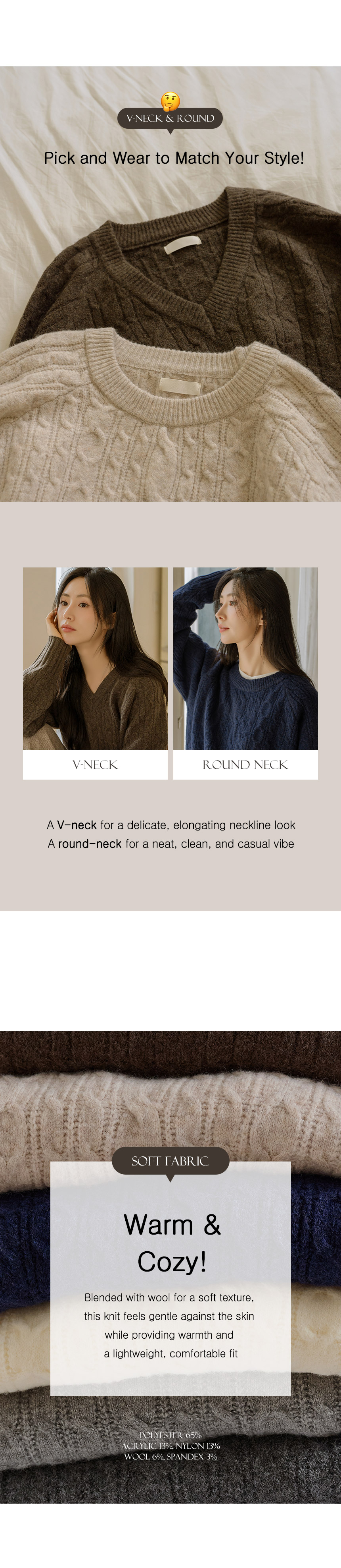 4DA32086HR_And Cable Knit Soft Knitwear (Round/V-Necked)