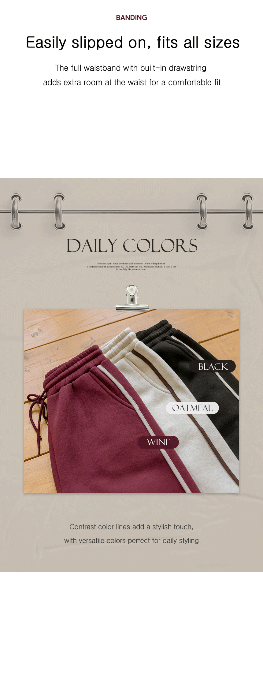 These are JUSTONE'S custom-made pants for a stylish one-mile look! The loose-fit design, paired with contrasting side stripes, adds a stylish touch, making these pants both comfortable and casual.