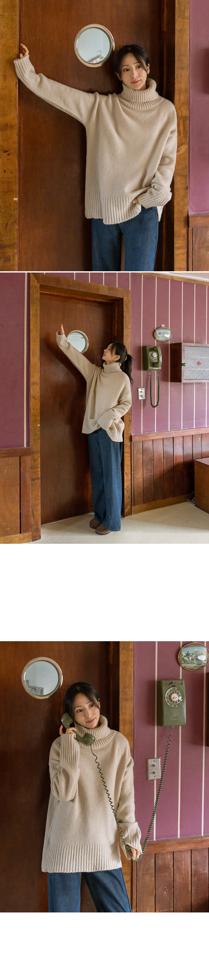 This turtleneck knitwear features a simple, classic design that effectively blocks cold winds, making it ideal for staying warm in winter. Its loose fit provides comfort while gently concealing any areas you’d like to minimize.