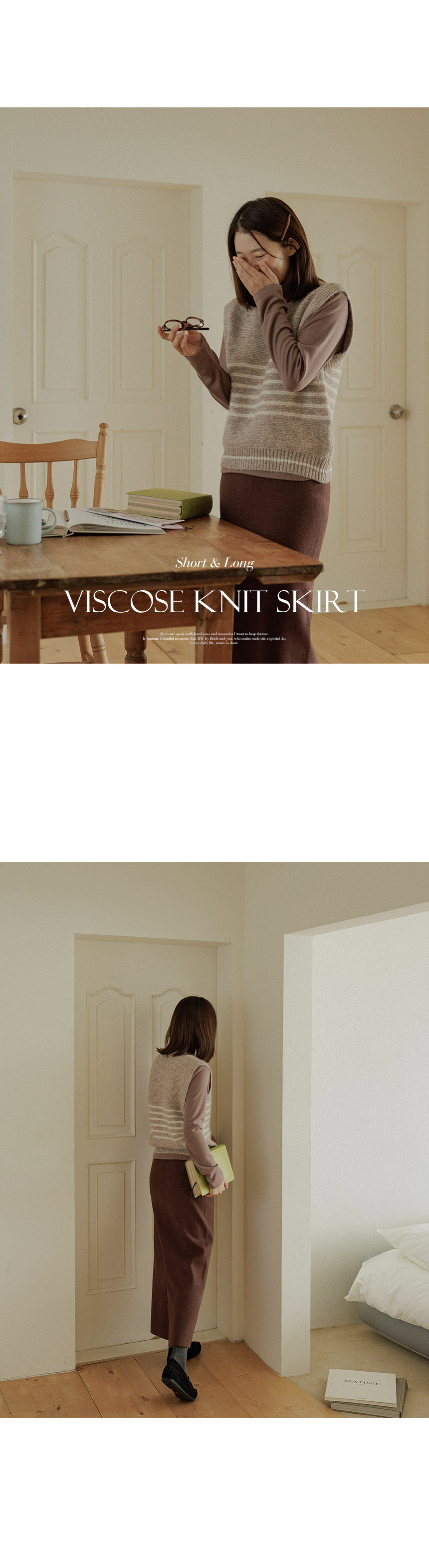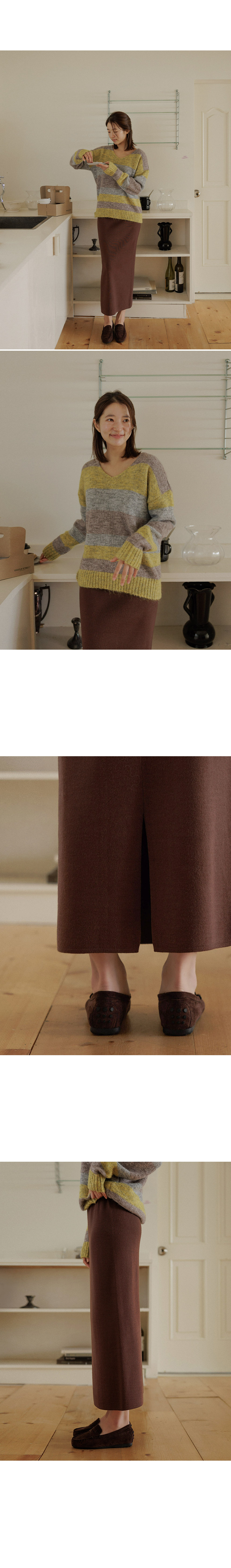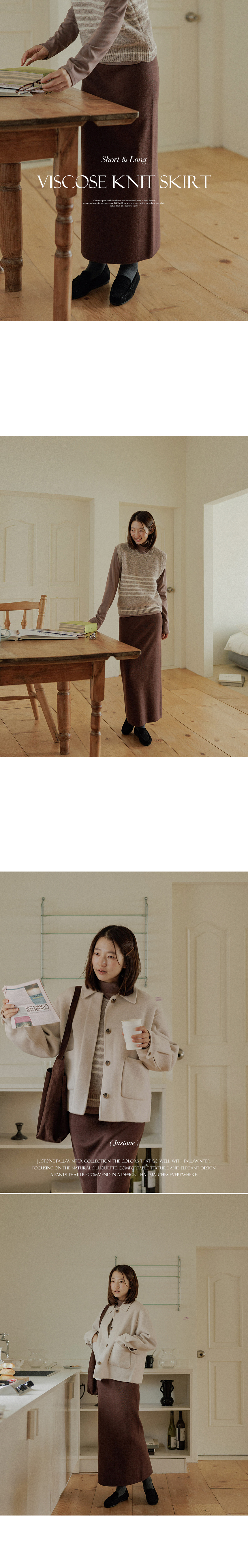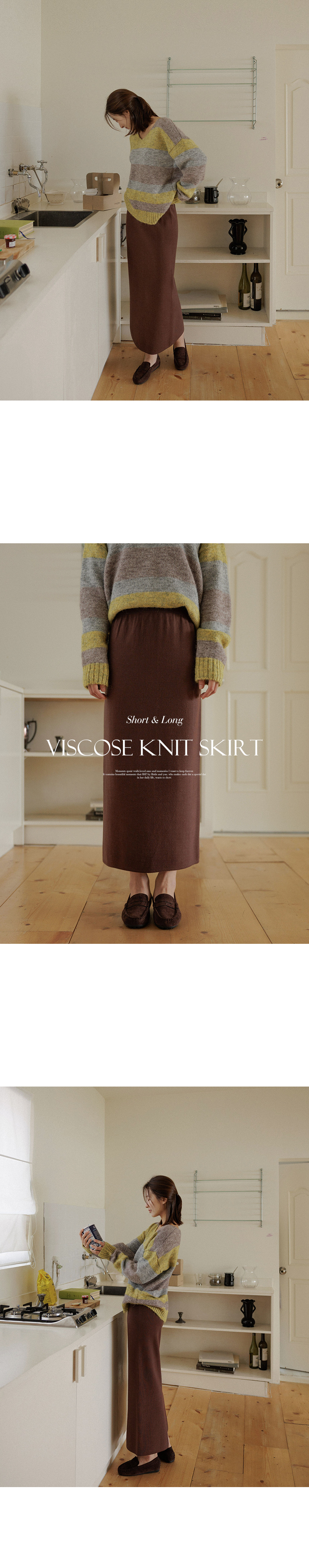 This knit skirt is made of viscose material, so it feels moist and soft to the touch. It has a firm tension, so you can wear it without worrying about stretching. The neat straight fit creates a slim silhouette without making the overall silhouette look bulky!