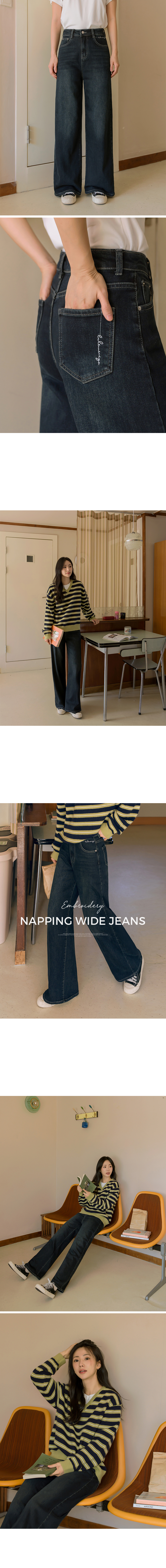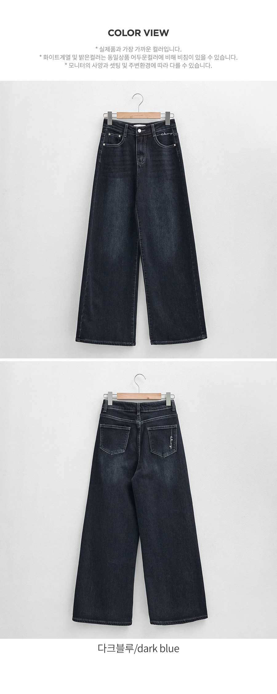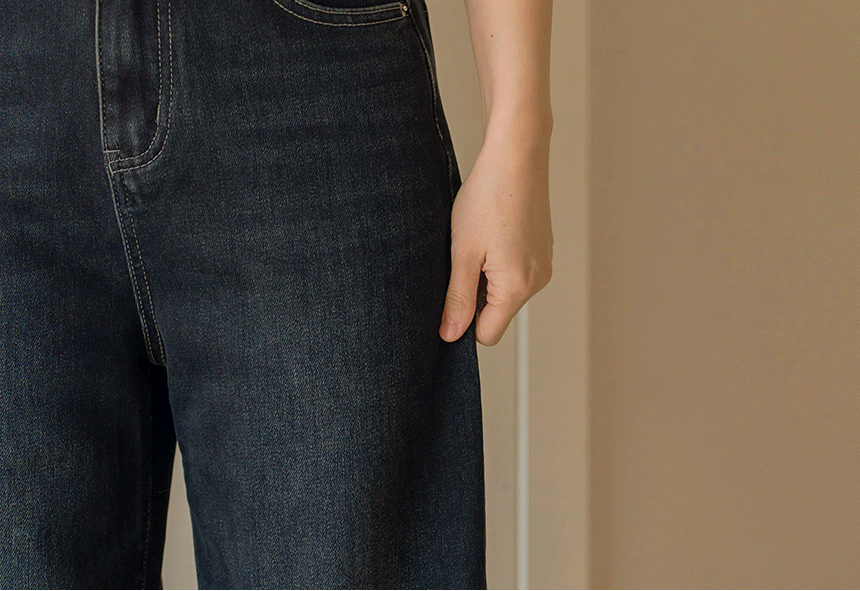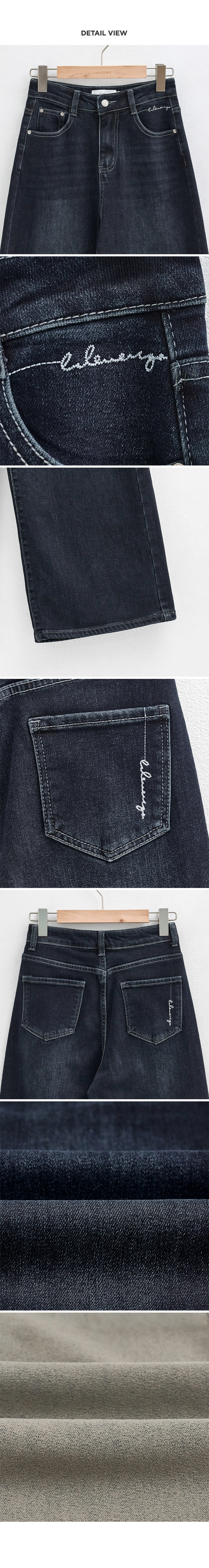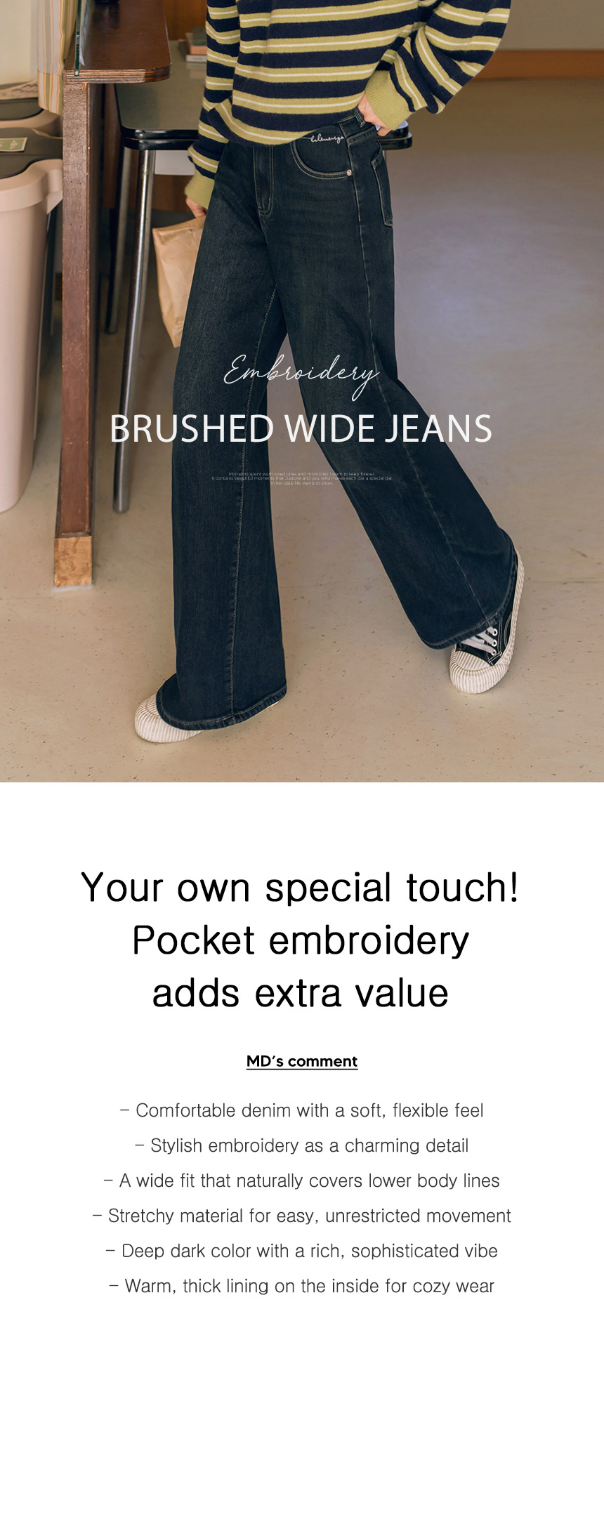 6DA32111CW_Cozy Fleece-lined Embroidery Pocket Wide Jeans