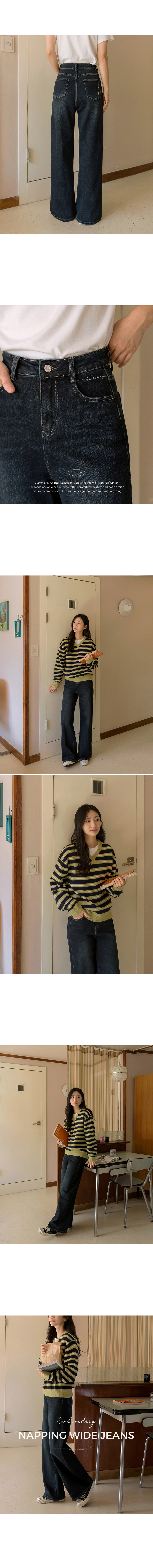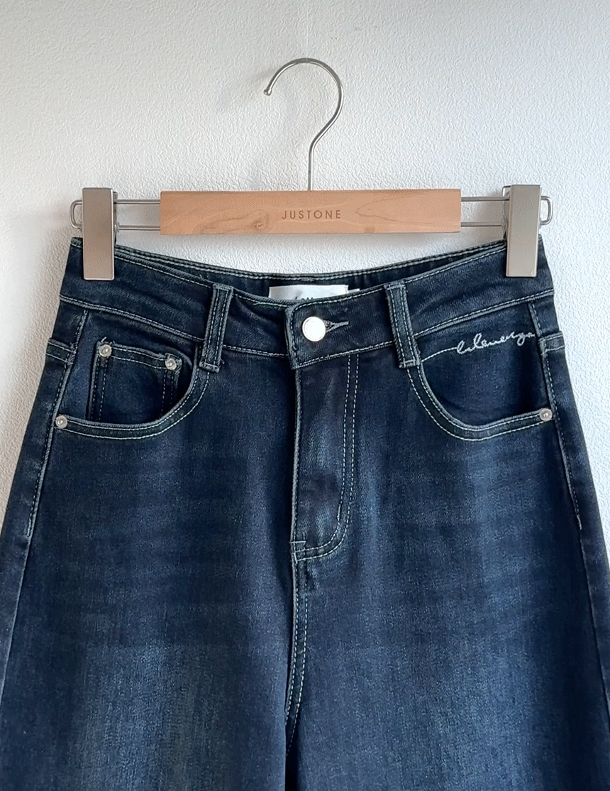 These wide jeans feature the embroidery as a special feature. They are comfortable to wear thanks to the flexible elasticity, and the cozy fleece lining inside keeps you warm as well!