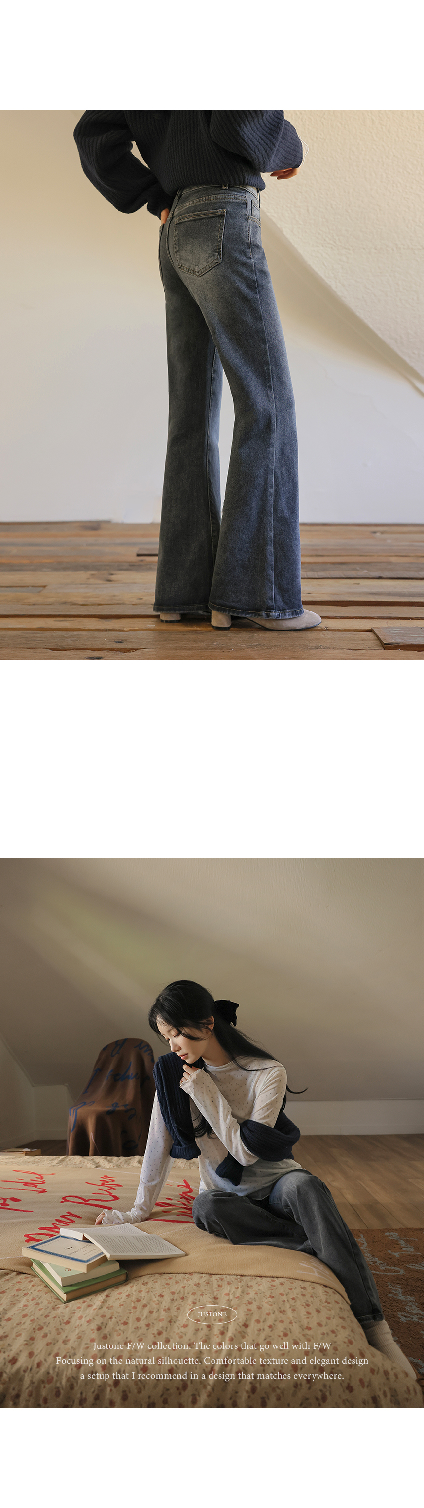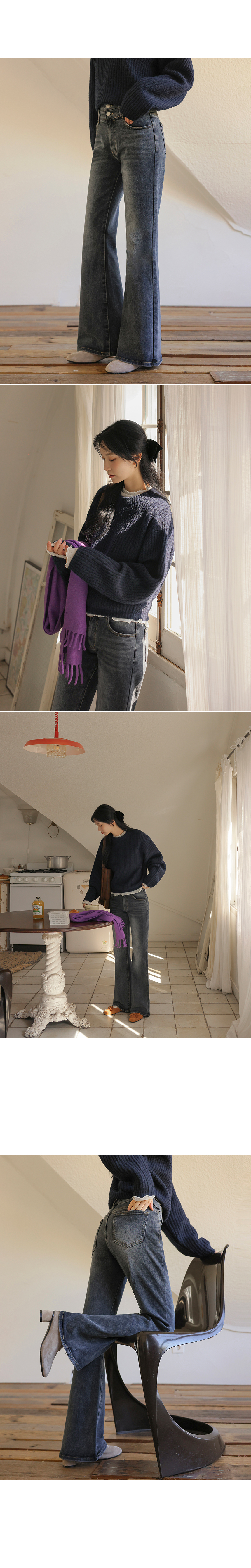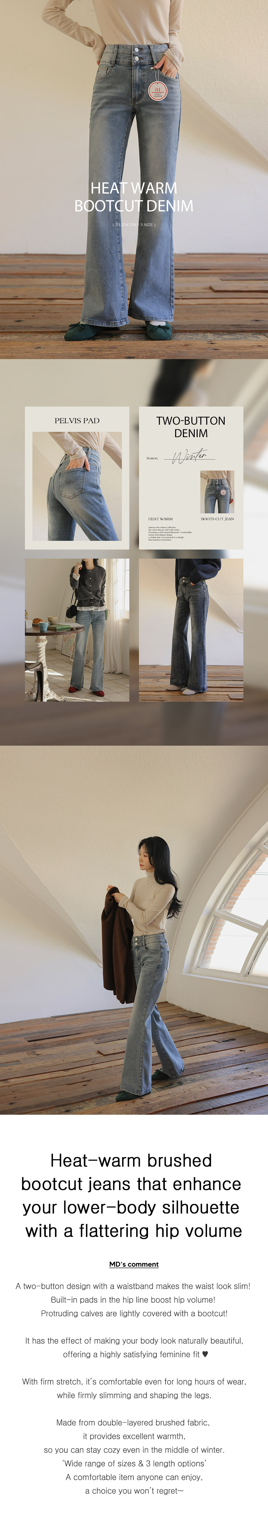 This is the bootcut denim with a design of hip-enhancing volume, making your body look beautiful. The double-knit thermal fleece keeps you warm, while the stretchy spandex keeps you comfortable all the time.