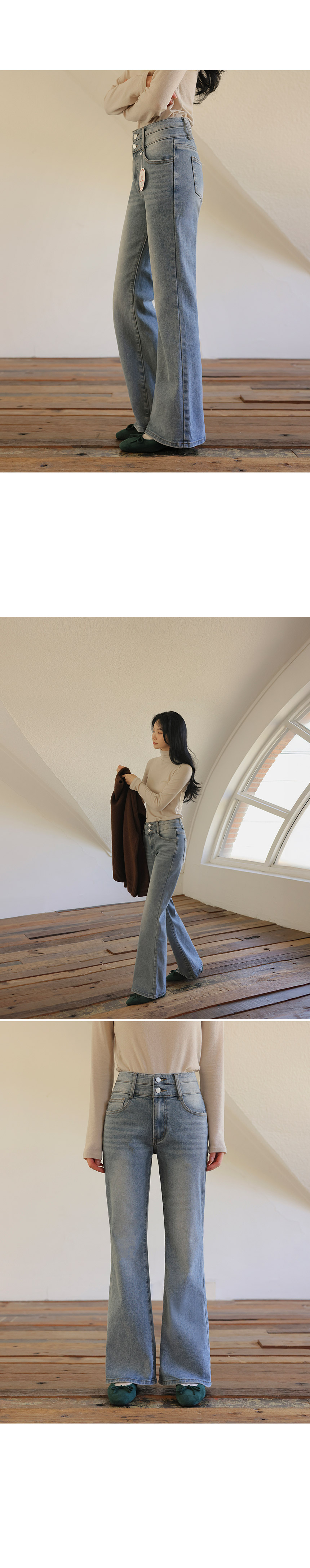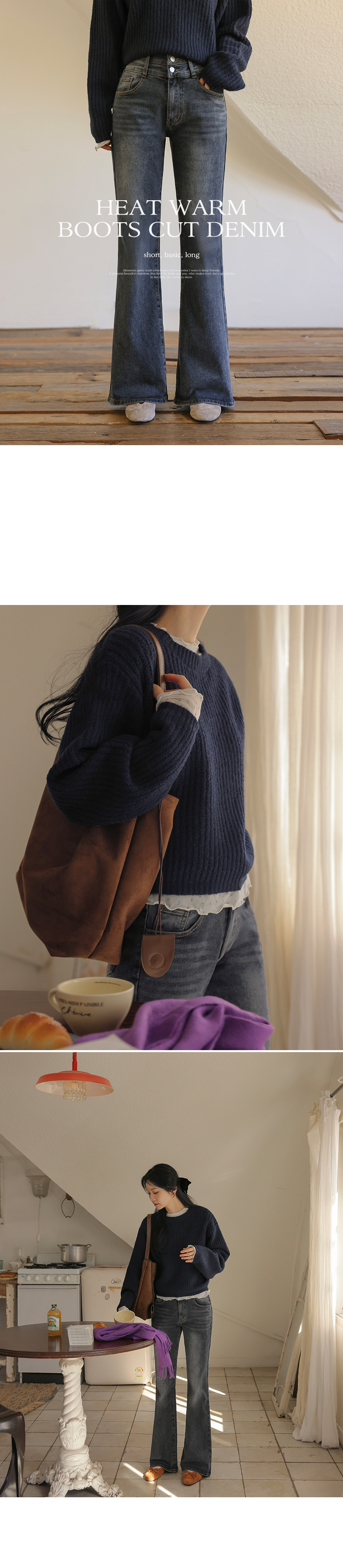5DA32127NN_Heatwarm Fleece-lined Hip-enhancing Volume Bootcut Jeans (Short/Basic/Long)