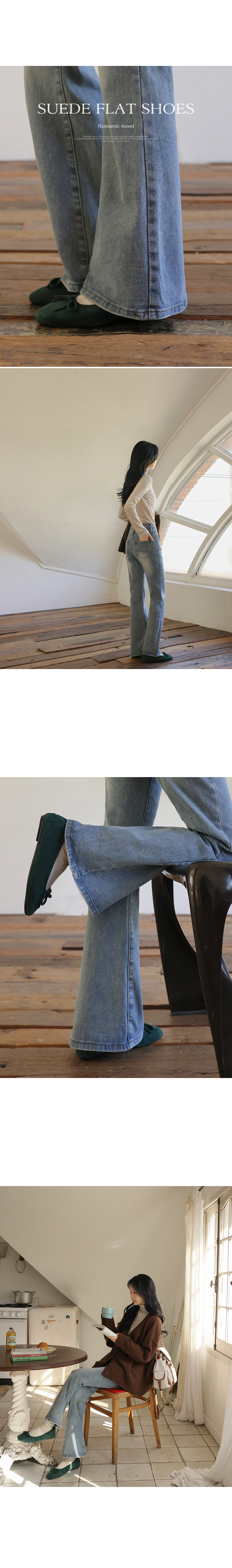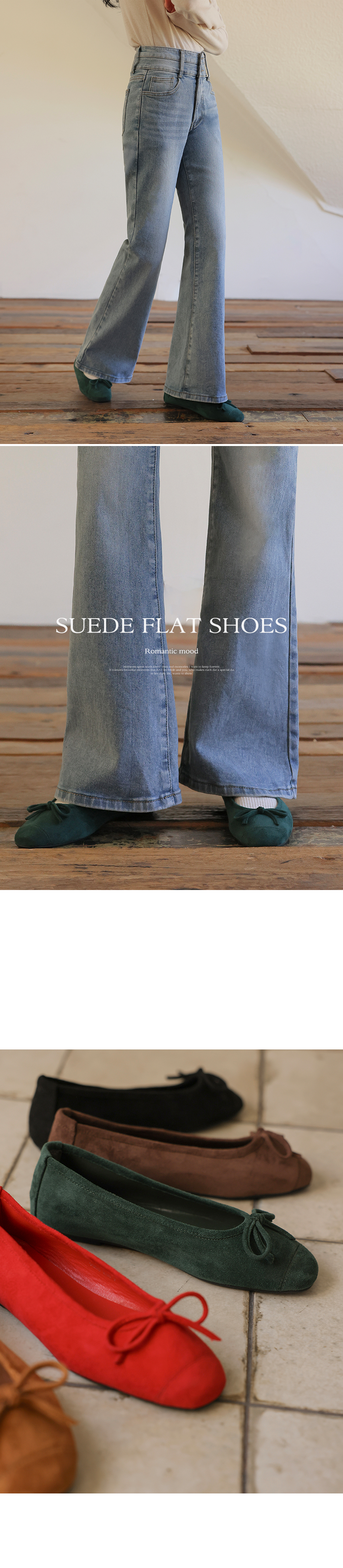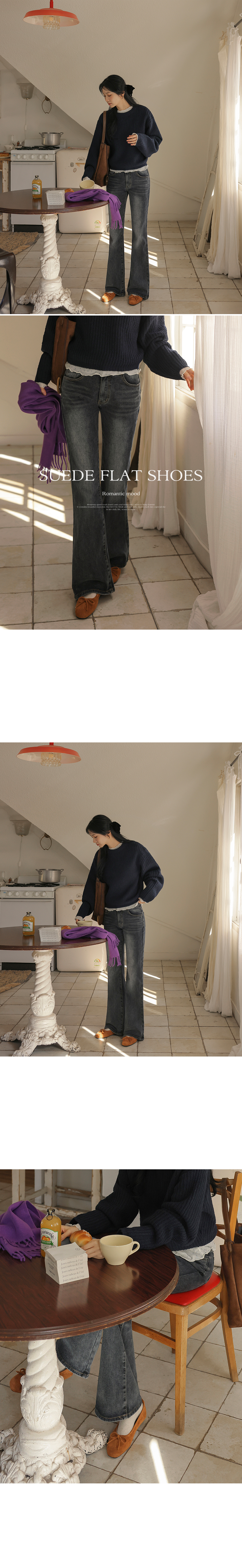 These flat shoes with ribbon details complete a romantic look! The suede material provides warmth, making them great to wear in autumn and winter!