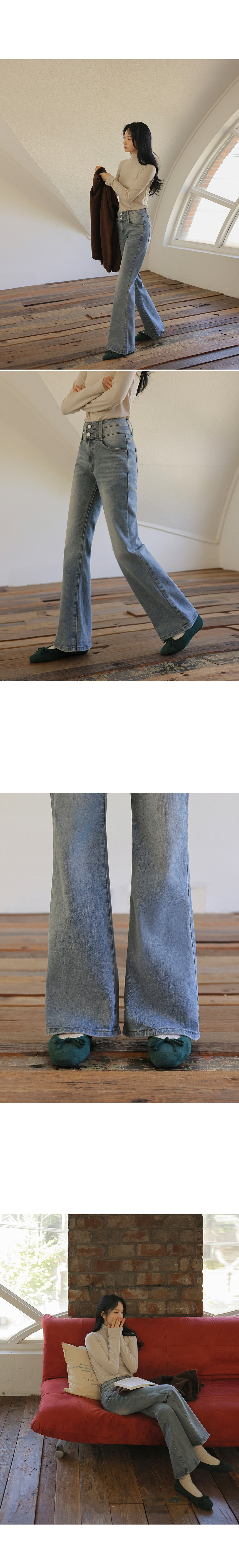This is the bootcut denim with a design of hip-enhancing volume, making your body look beautiful. The double-knit thermal fleece keeps you warm, while the stretchy spandex keeps you comfortable all the time. -