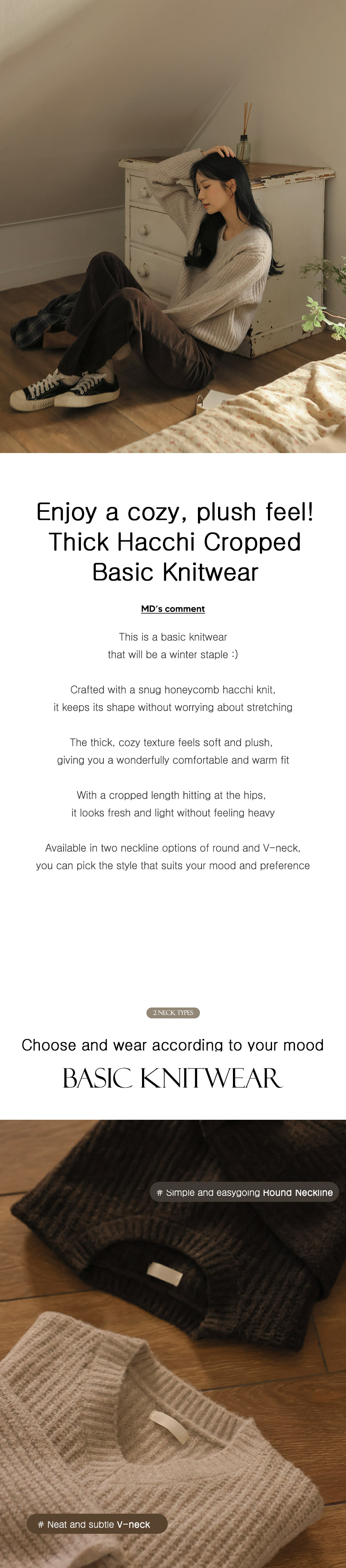 5DA32128NN_Thick Crop Basic Knitwear (Round/V-necked)