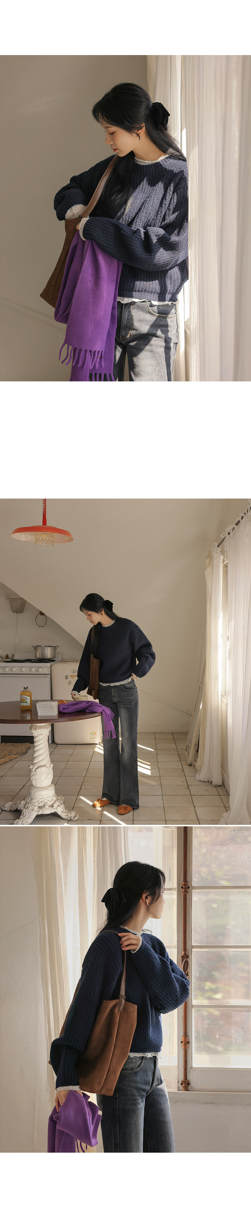 A thick, fluffy knitwear piece that’s cozy and comfortable without worrying about stretching. Its cropped length hits at the hips, offering a light and refreshing fit that doesn’t feel heavy.
