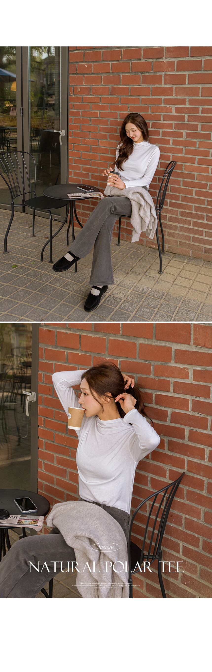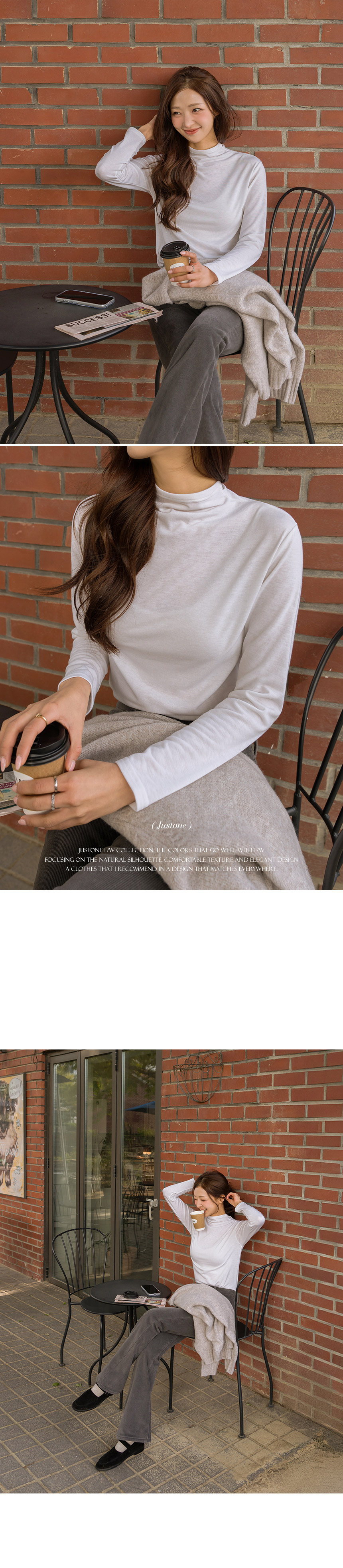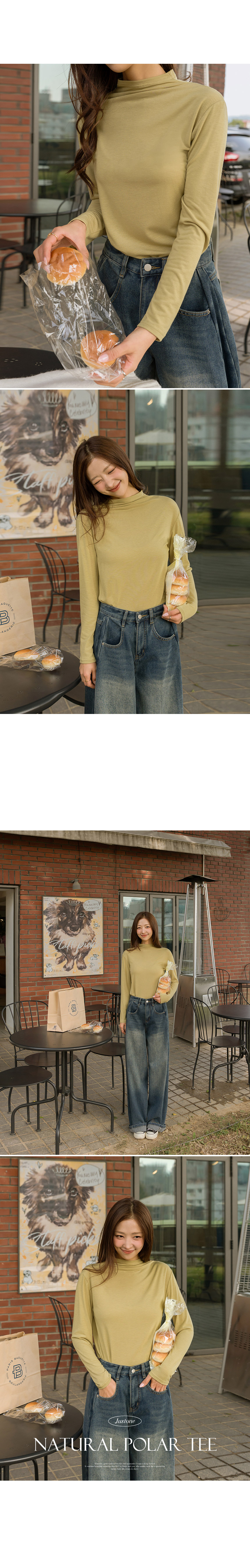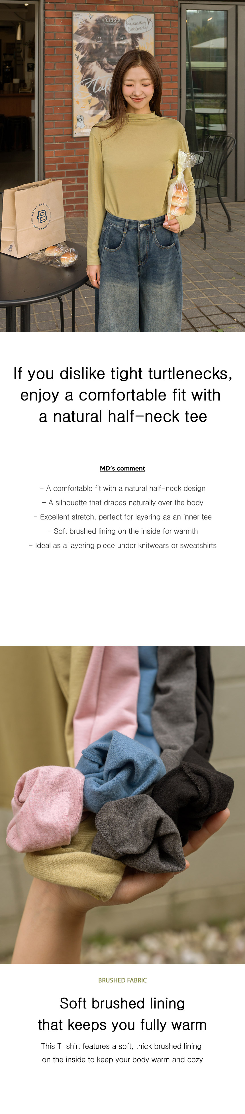 This natural half-neck T-shirt is comfortable to wear as it does not tighten the neck. Having soft fleece lining inside, it is a great item to wear as an inner layer in F/W seasons.