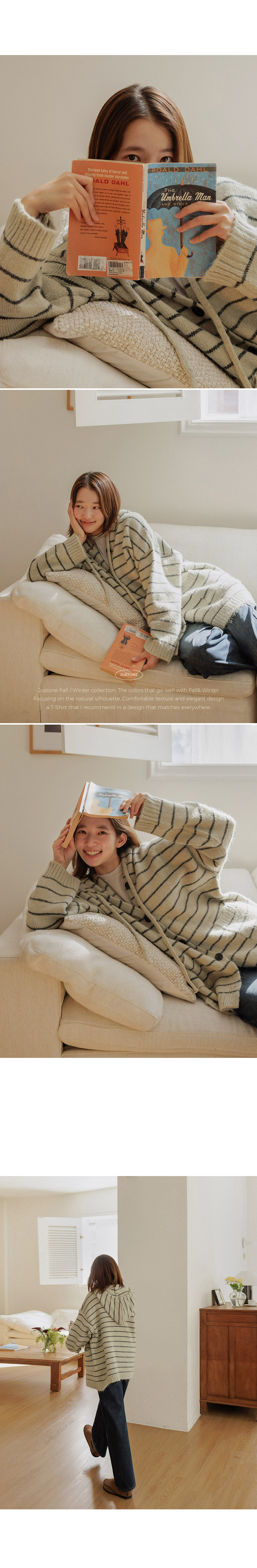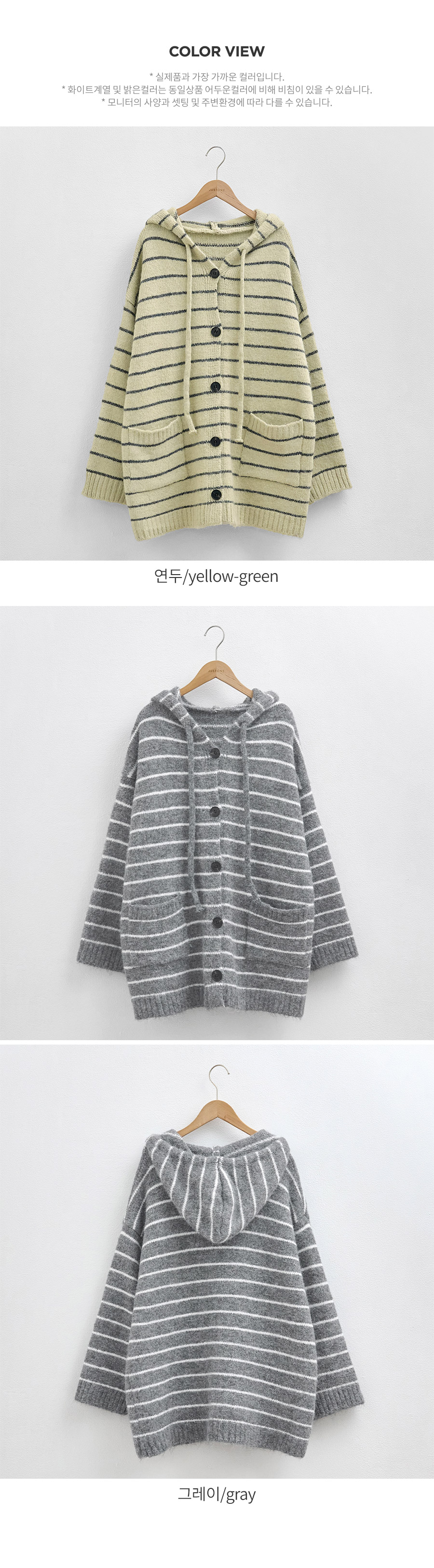 5DA32149HN_Head Striped Hooded Long Cardigan