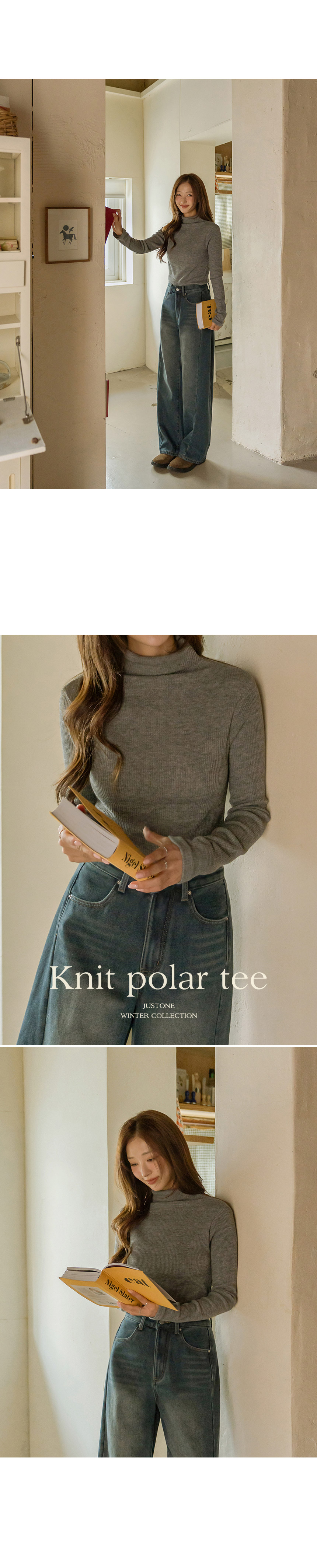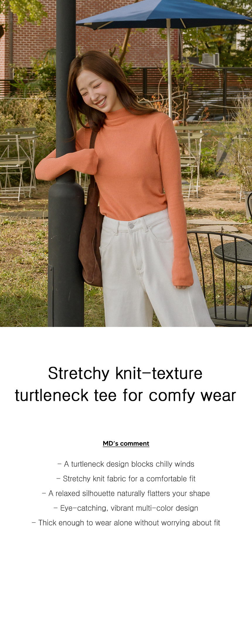 6DA32163HN_Stretchy Knitted Turtleneck Tee