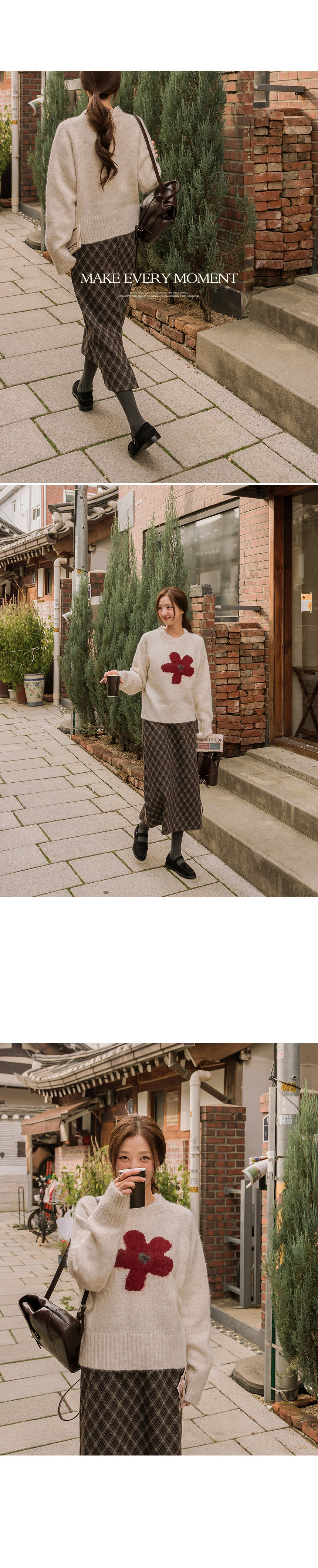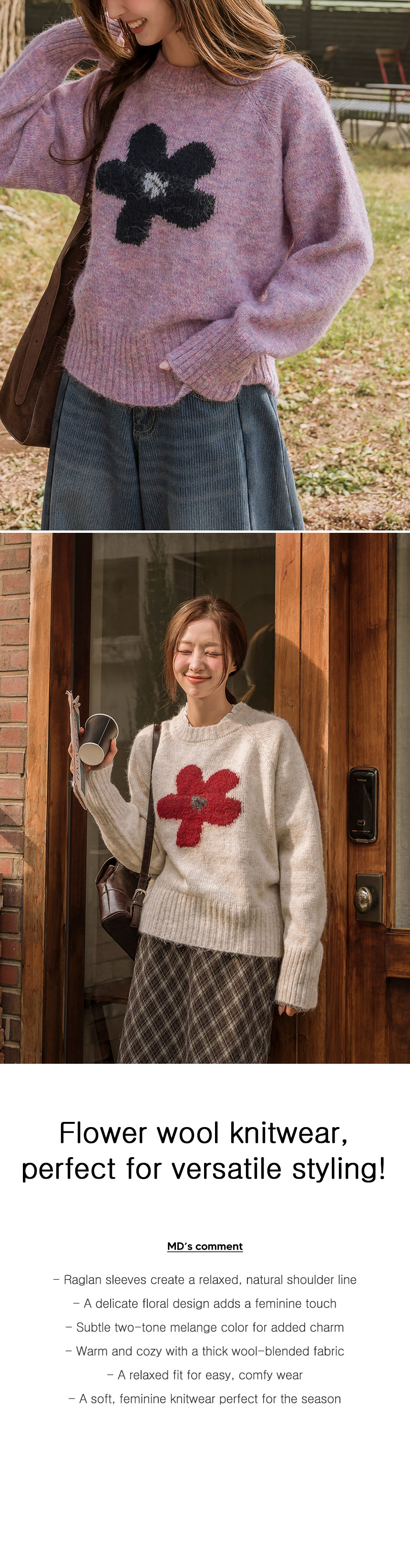 This feminine floral knitwear is full of charm! Made from soft, thick wool-blend fabric, it keeps you cozy and warm all day.
