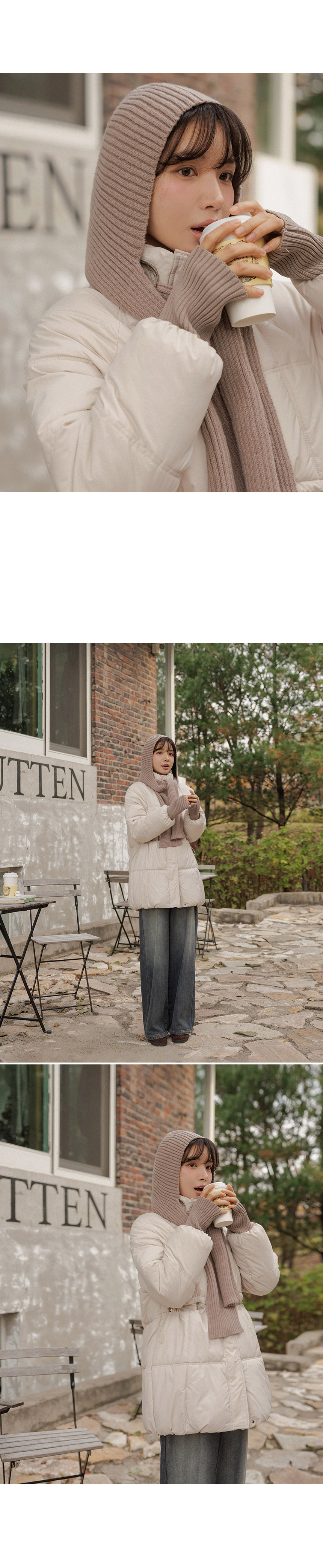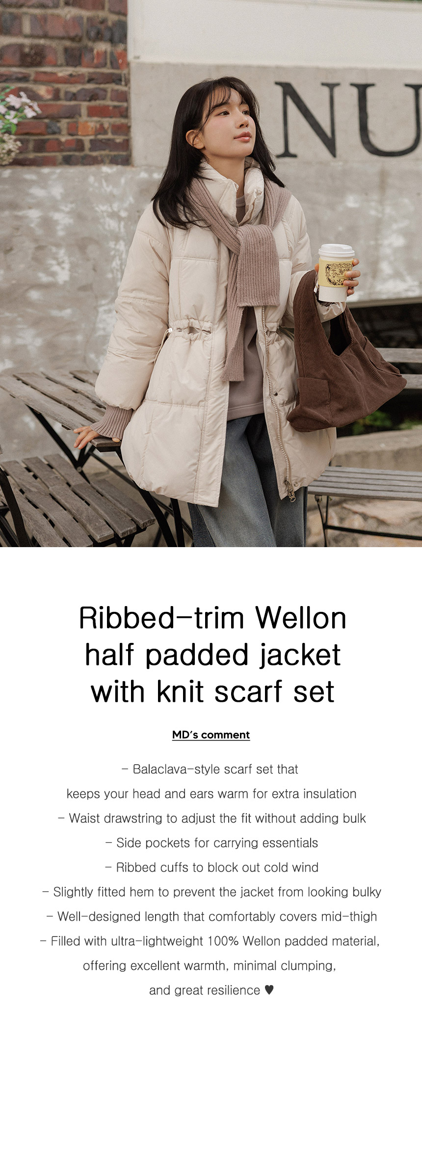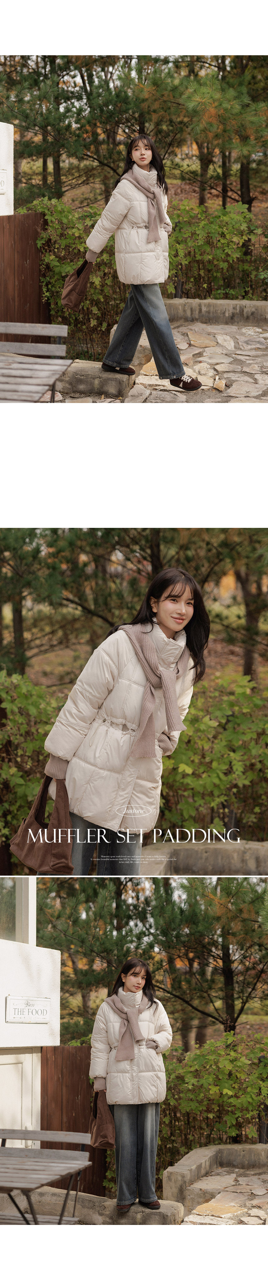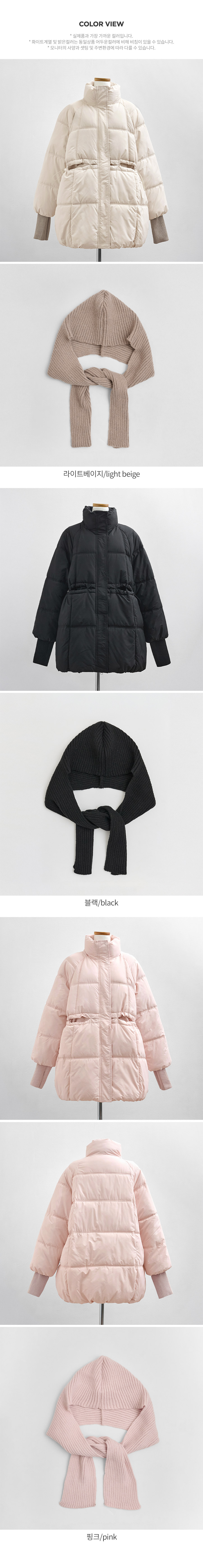 5DA32186NN_Ribbed Contrast Wellon Half Padded Jacket (Scarf Set)