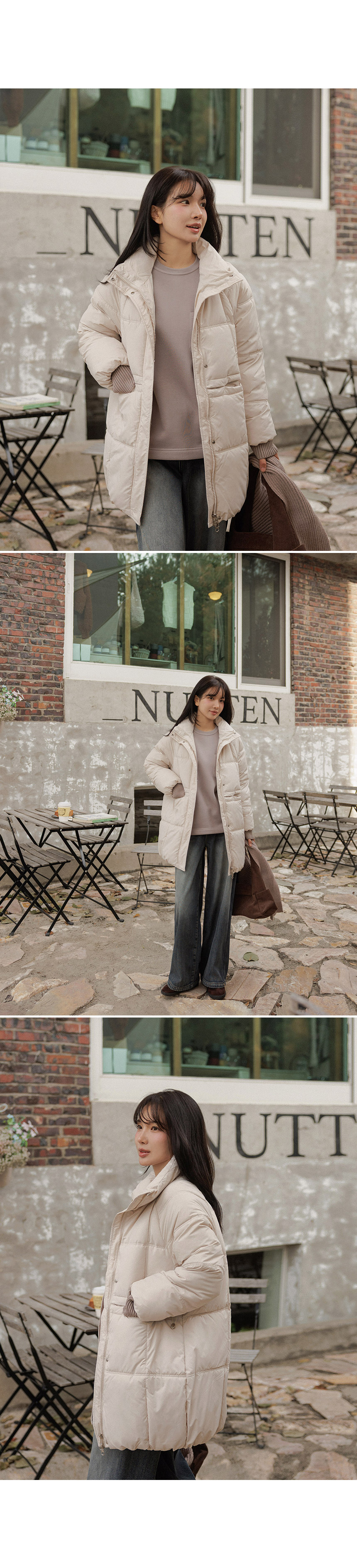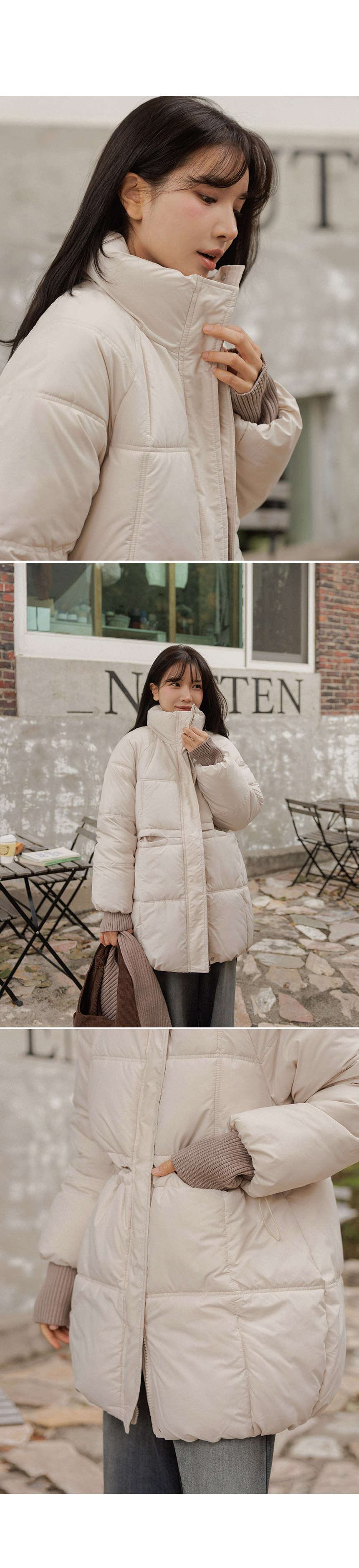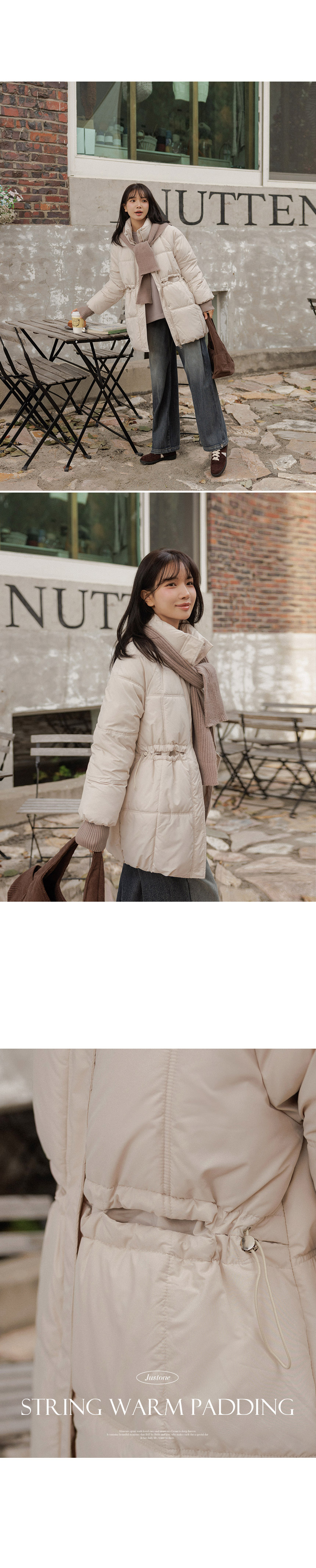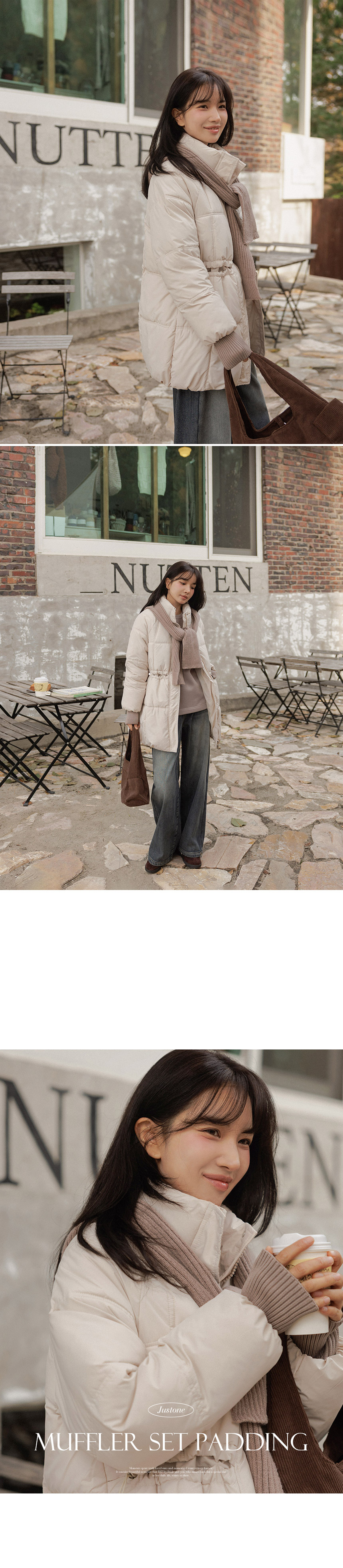 5DA32186NN_Ribbed Contrast Wellon Half Padded Jacket (Scarf Set)
