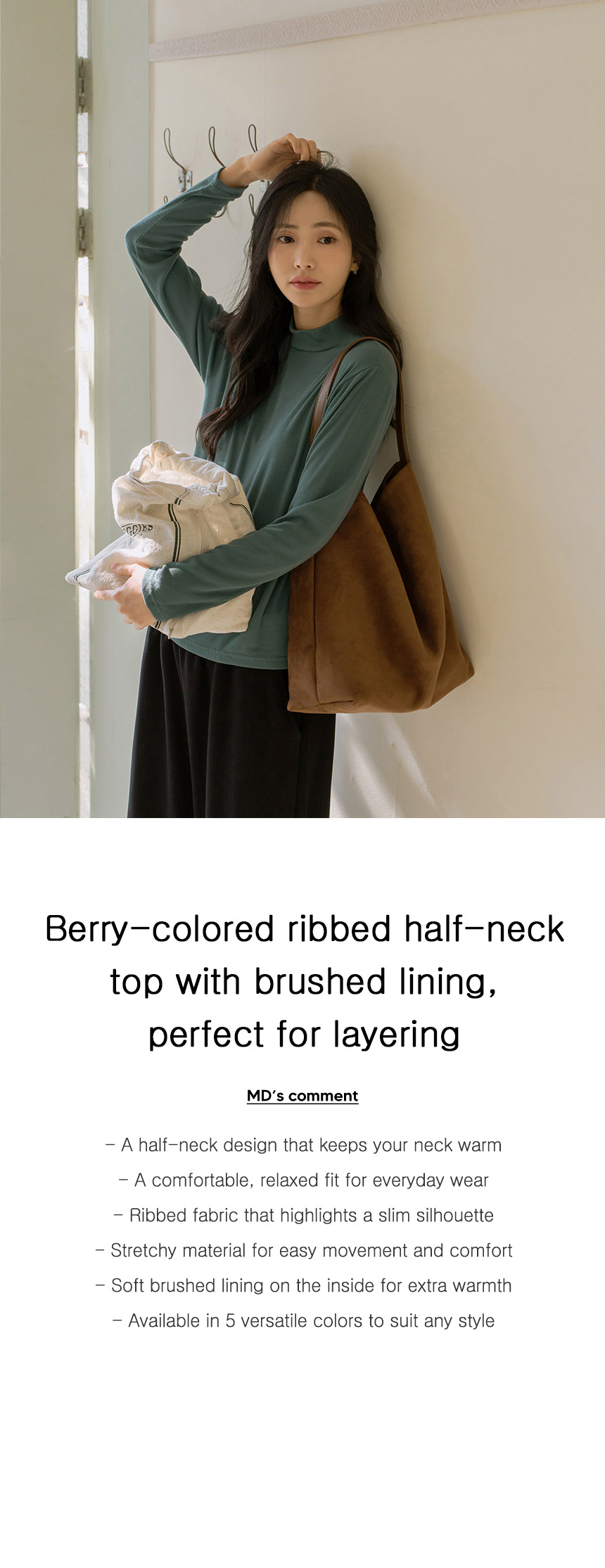 6DA32178NN_Berry Brushed Corrugated Half-neck T-Shirt