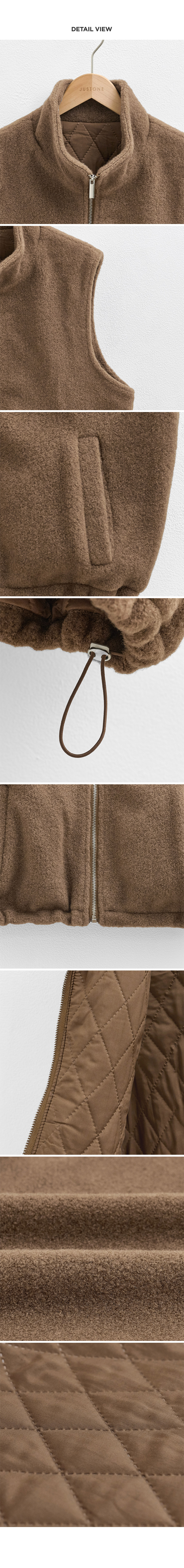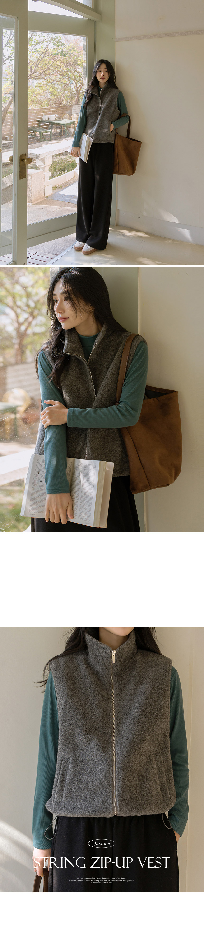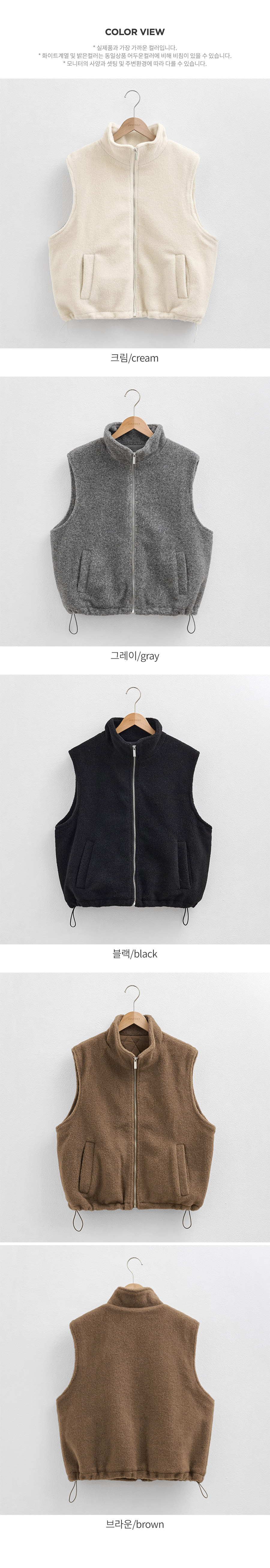 A cozy zip-up vest perfect for indoor wear! Made from soft, plush fleece, it offers exceptional comfort and warmth. The adjustable drawstring at the hem lets you customize the fit, allowing you to create your ideal silhouette with ease.