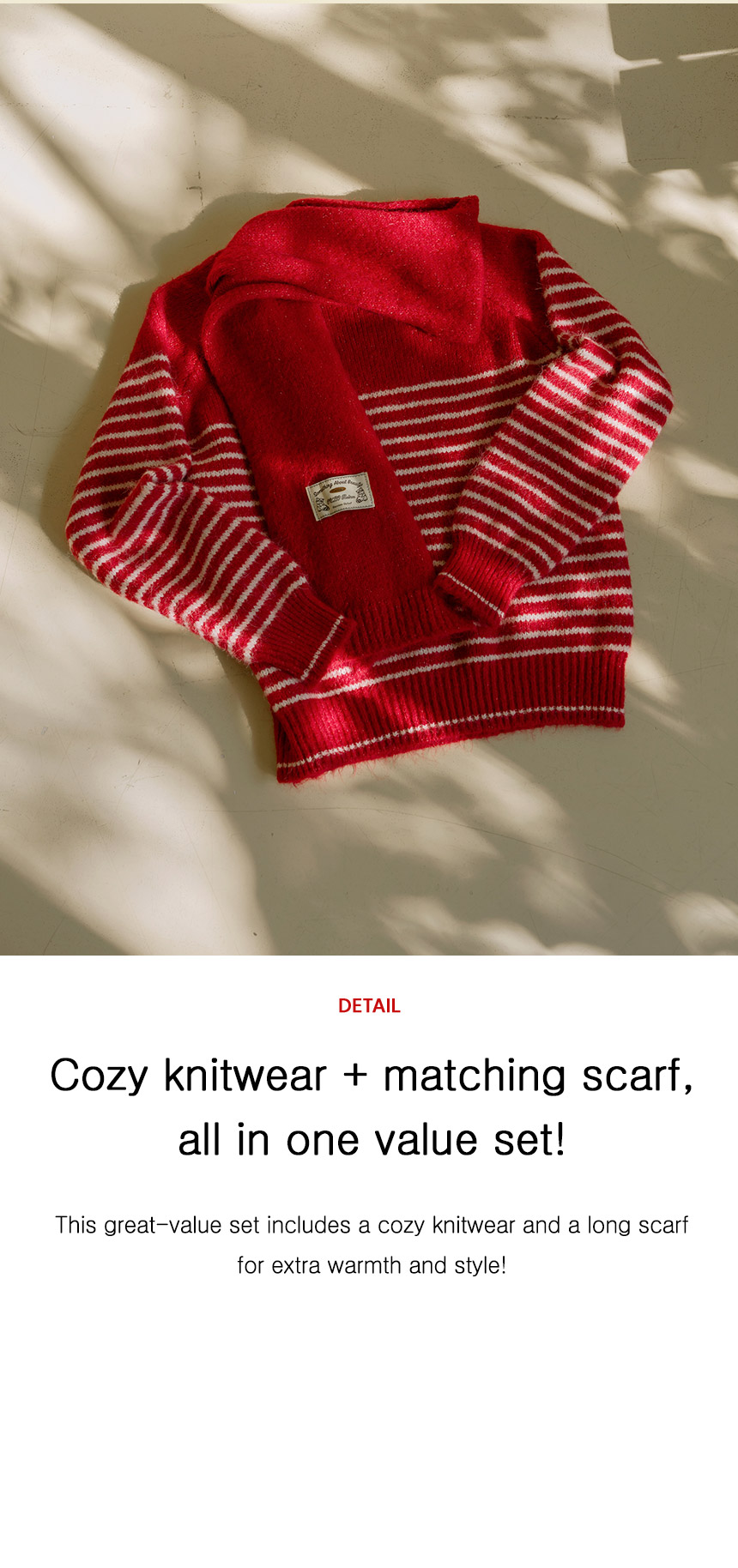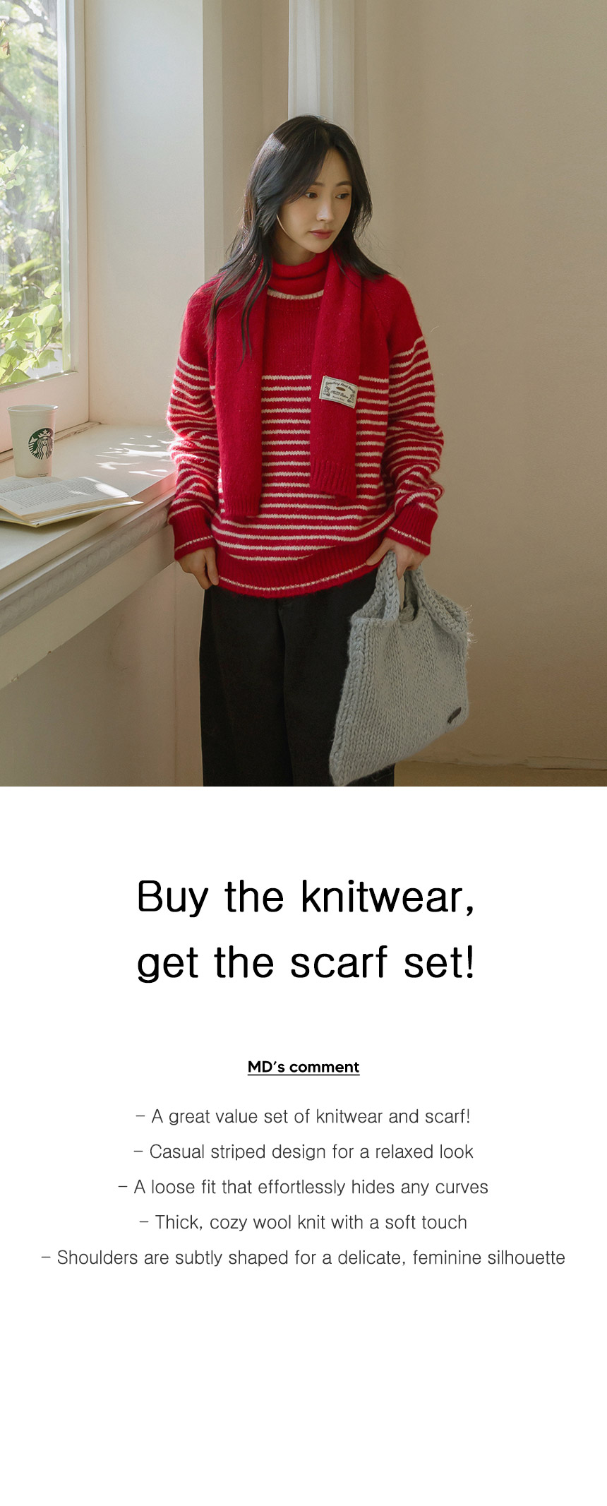 This set of a muffler and a knitwear is a great value item! The loose-fit design covers your body shape, making it perfect for a delicate look.