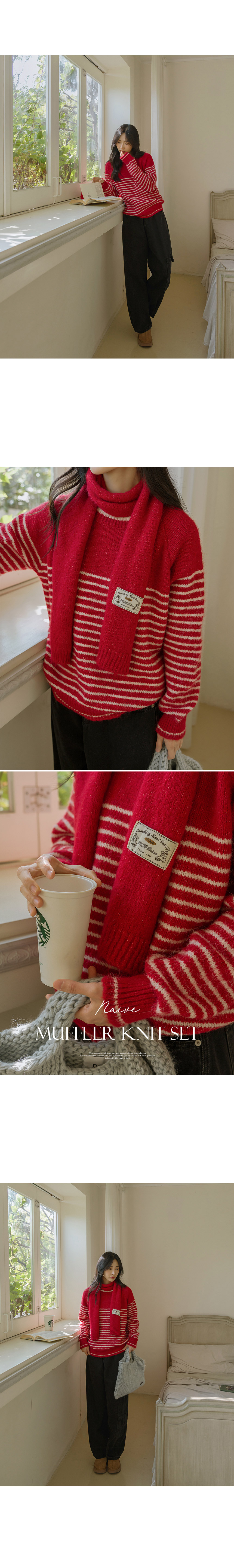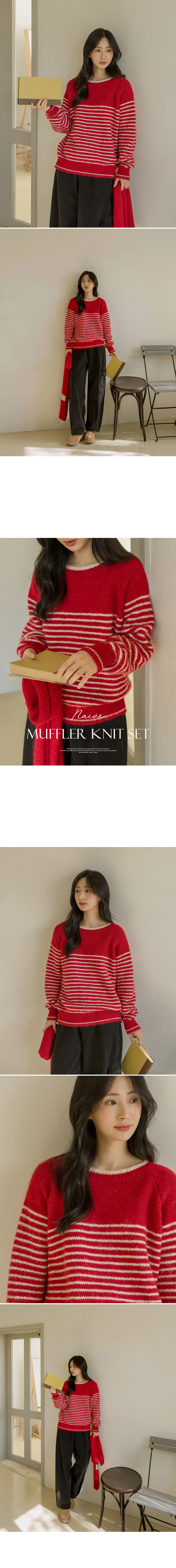 6DA32185HN_Naive Striped Wool Knitwear(Muffler Set)