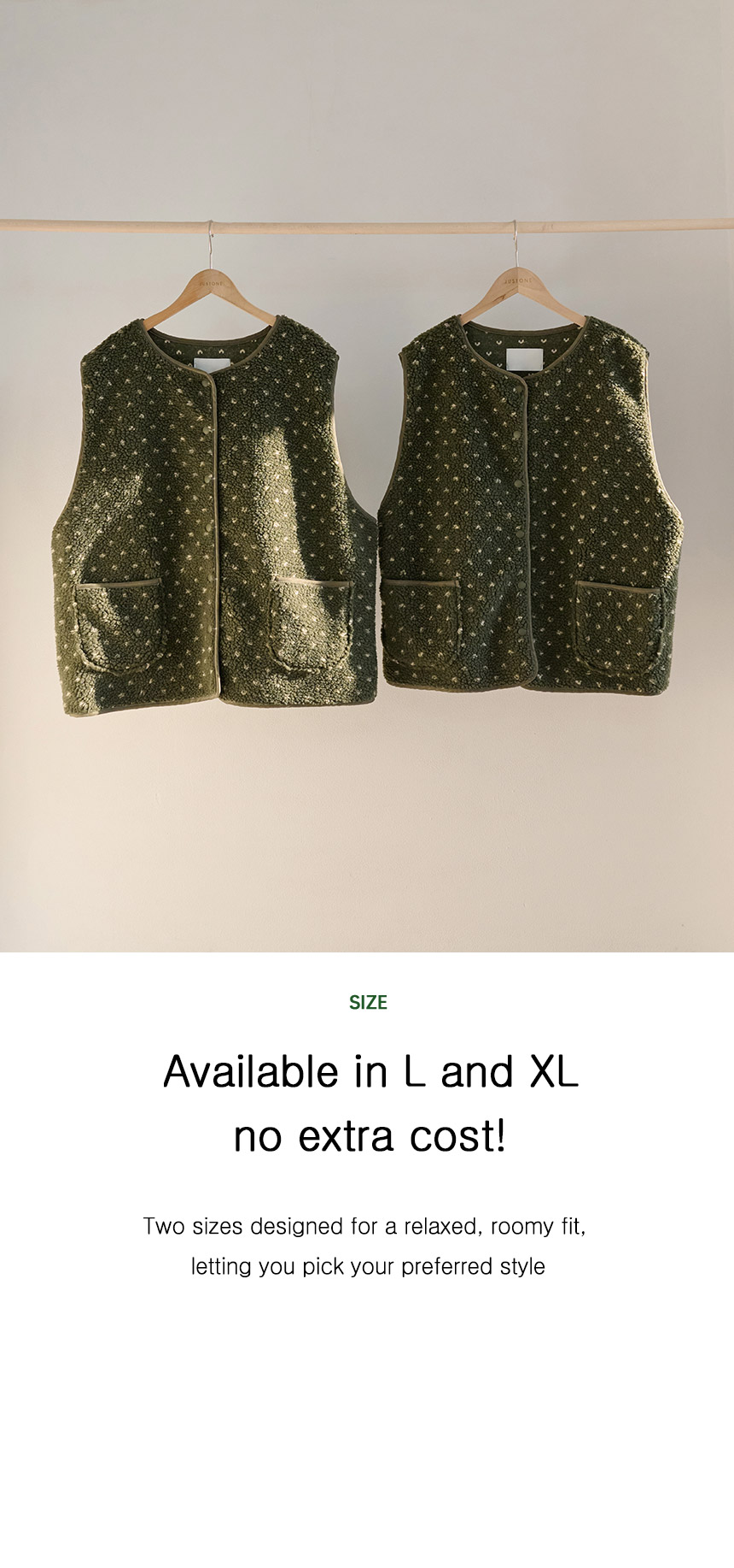 Fluffy~ This vest has a heart pattern that makes it look lovely. Having 2 sizes, you can wear it loosely to fit your body type!