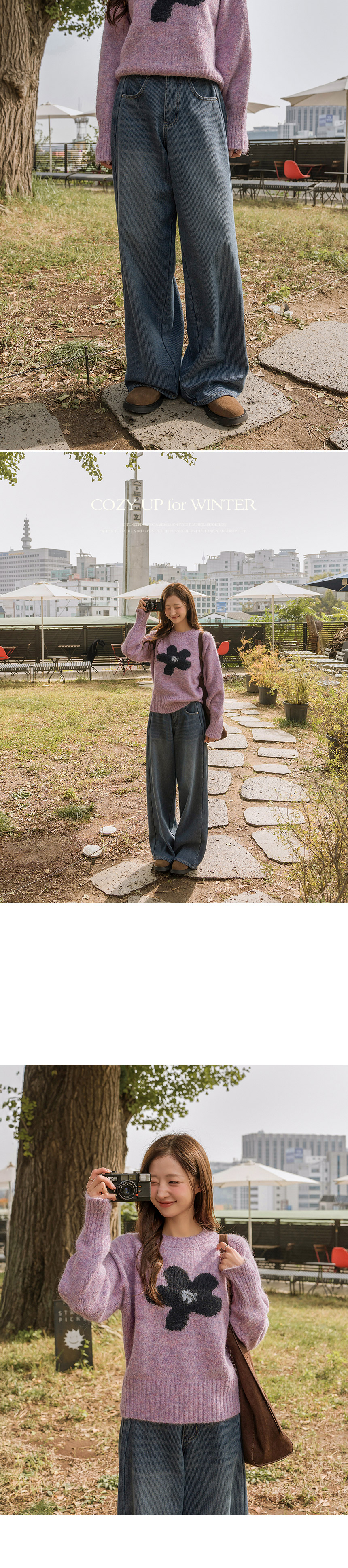 This feminine floral knitwear is full of charm! Made from soft, thick wool-blend fabric, it keeps you cozy and warm all day. -