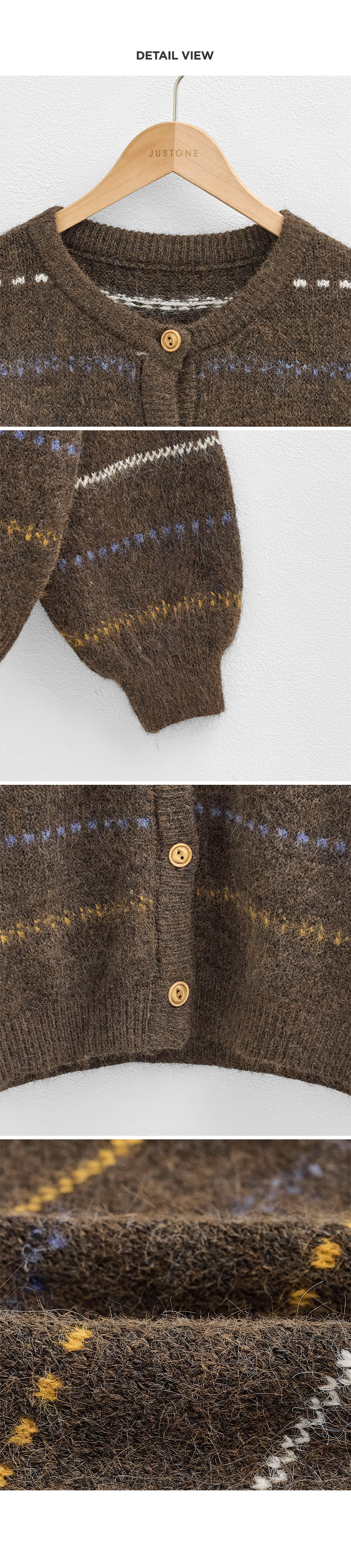 With a delicate petite color pattern and cozy wool-blend knit, this cardigan keeps you warm while looking effortlessly charming.