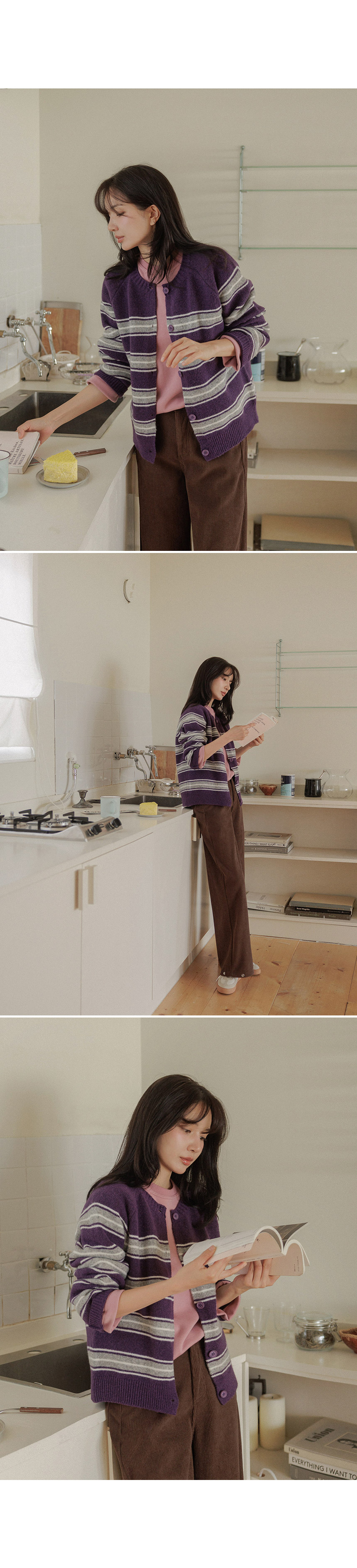 A round cardigan with vivid colors! The chic pattern is the highlight and the fluffy wool material keeps you warm and comfortable.
