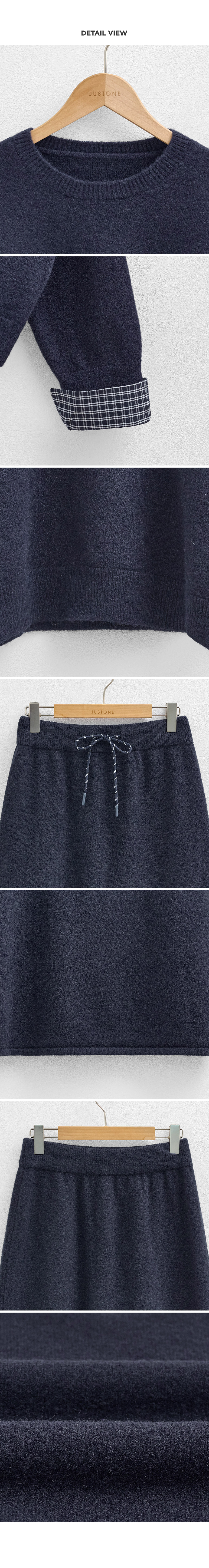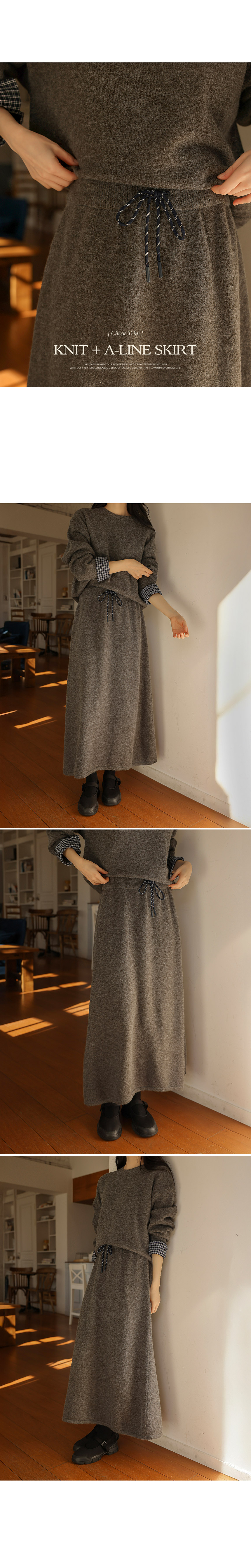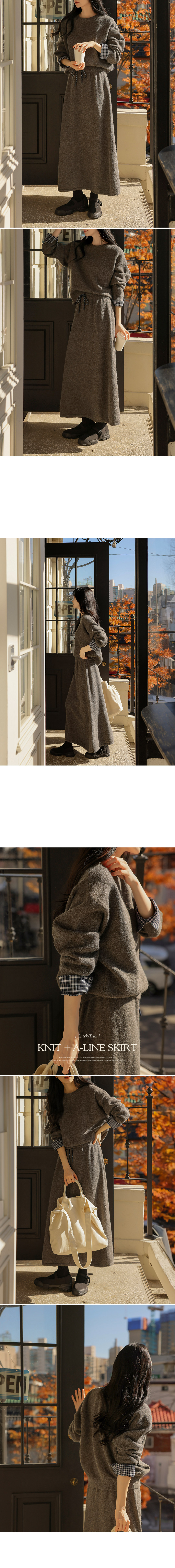 4DA32209JJ_Check-Pattern Detail Knitwear+A-Line Knit Skirt Set