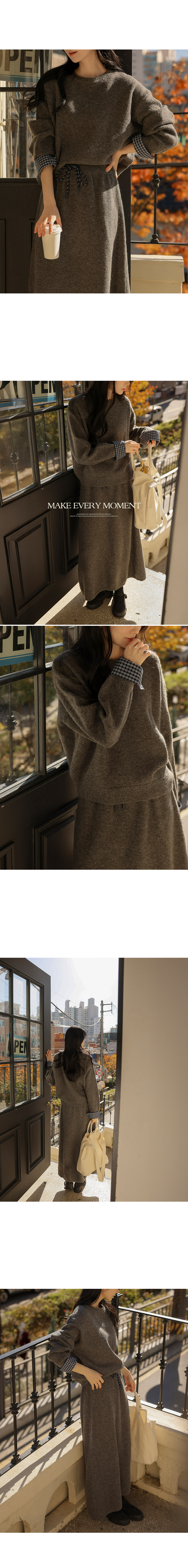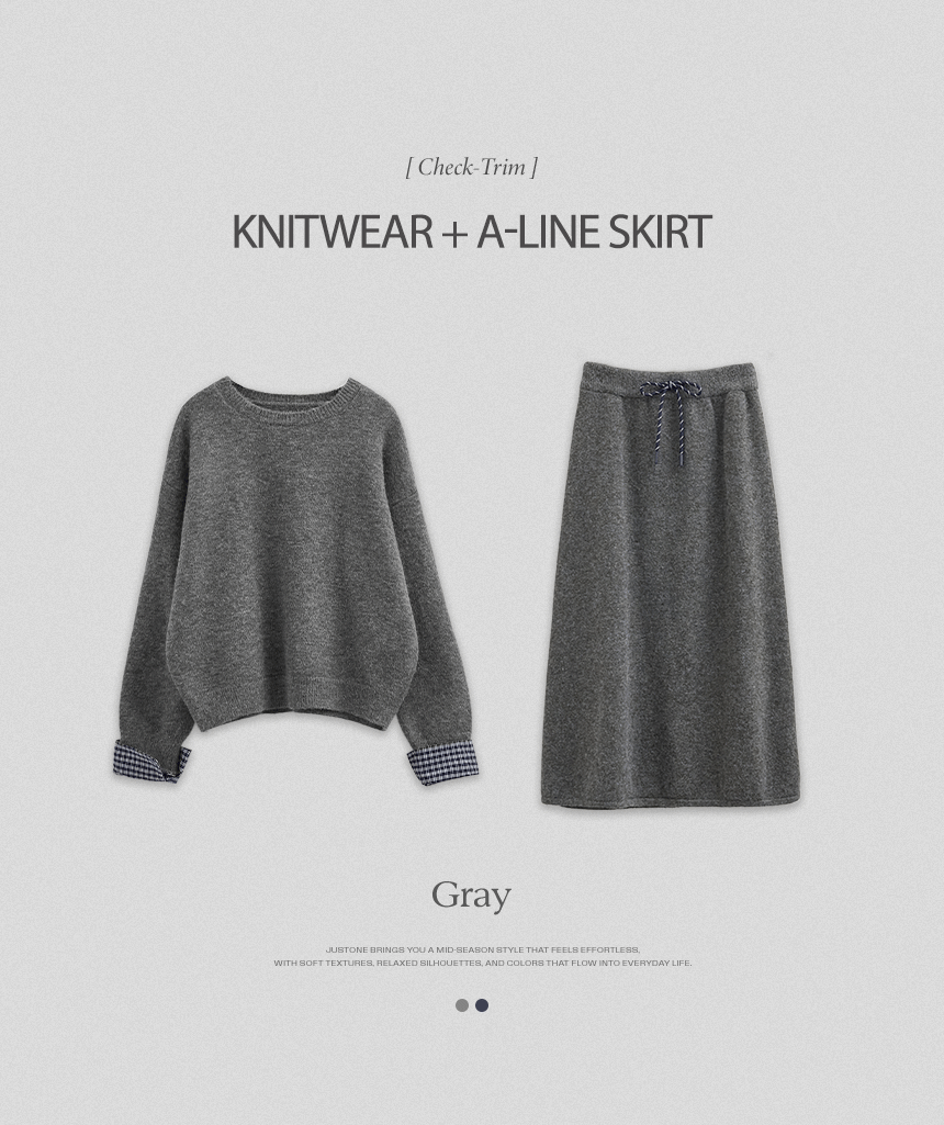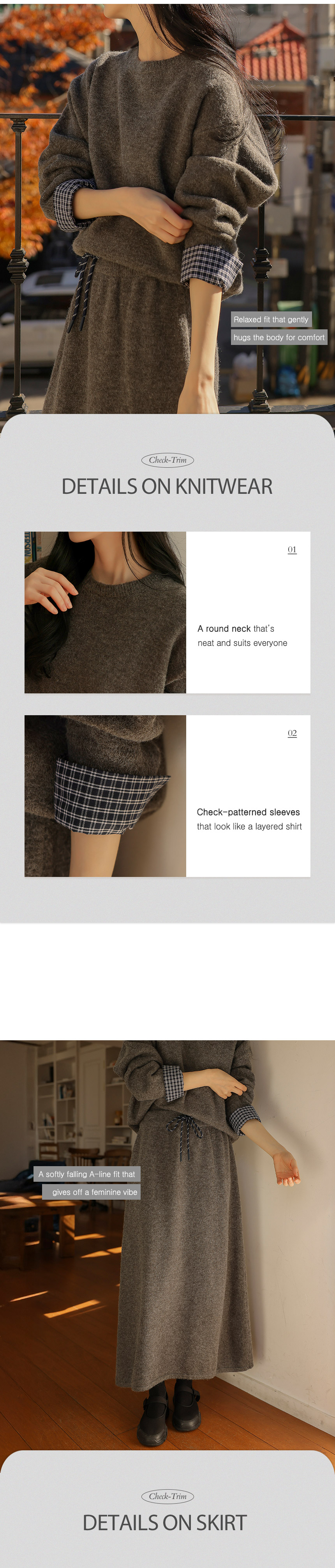 4DA32209JJ_Check-Pattern Detail Knitwear+A-Line Knit Skirt Set