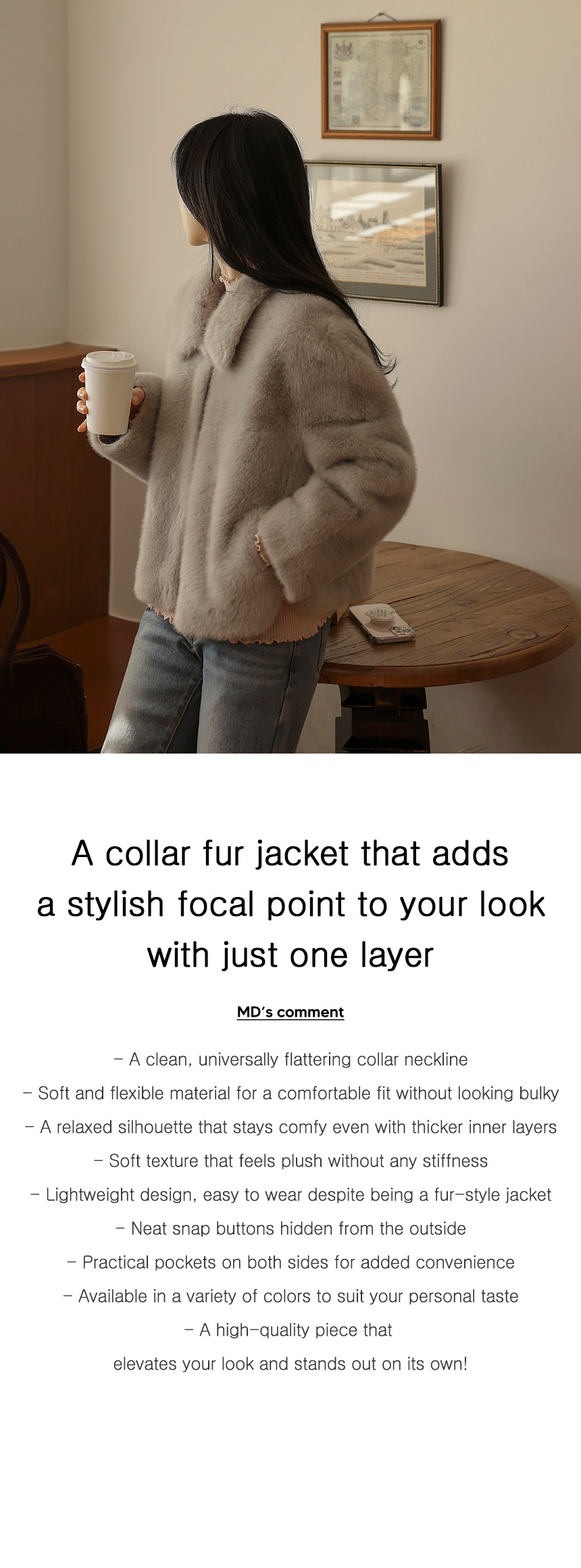 This piece completes a stylish look with just one layer. Soft and cozy, it’s perfect for keeping warm in winter. Its short length and collar design make it ideal for a casual, effortless vibe.