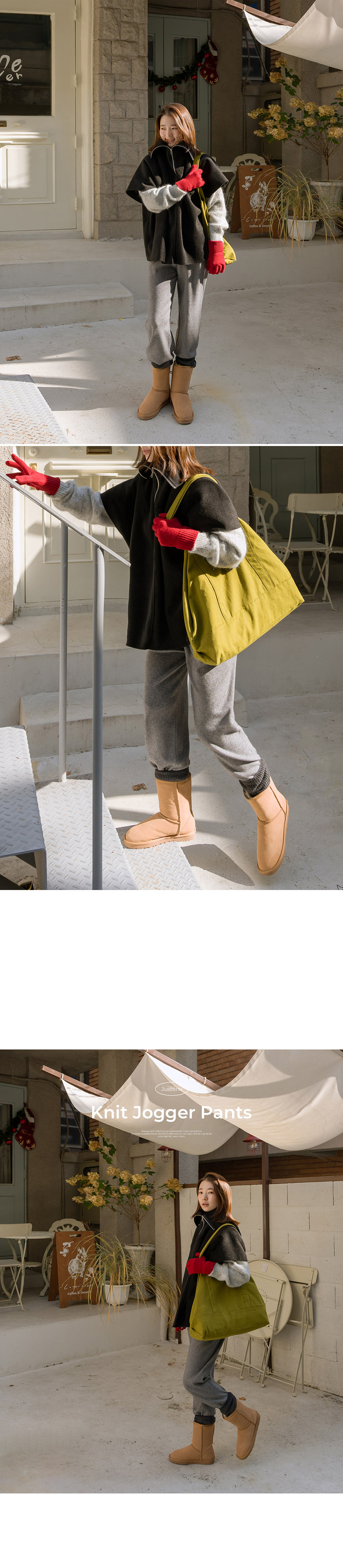 These are knit jogger pants that are easy to match with everyday wear. They are soft, and the waistband makes them even more comfortable to wear.