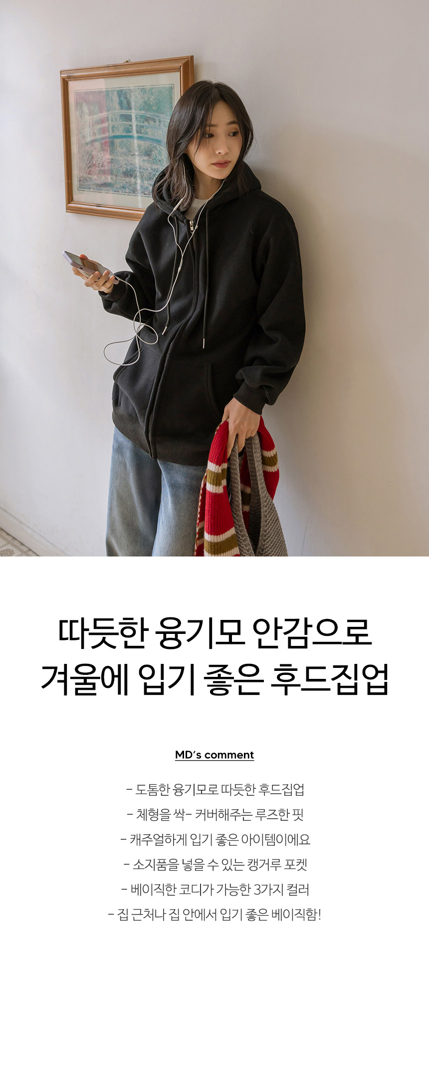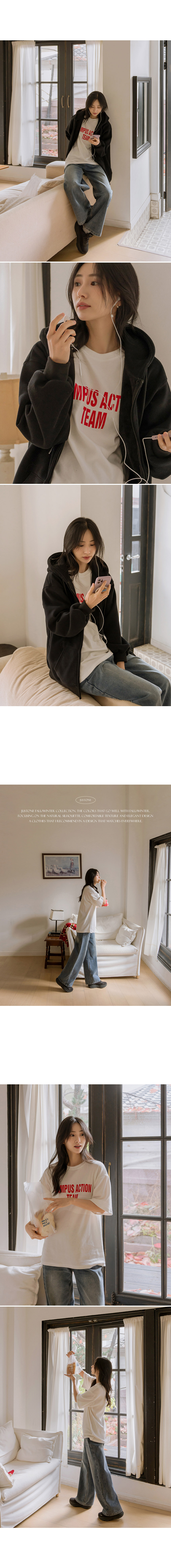 This thick, cozy hooded zip-up is perfect for layering as outerwear! Its loose fit comfortably drapes over your body, making it flattering and easy to wear anywhere.