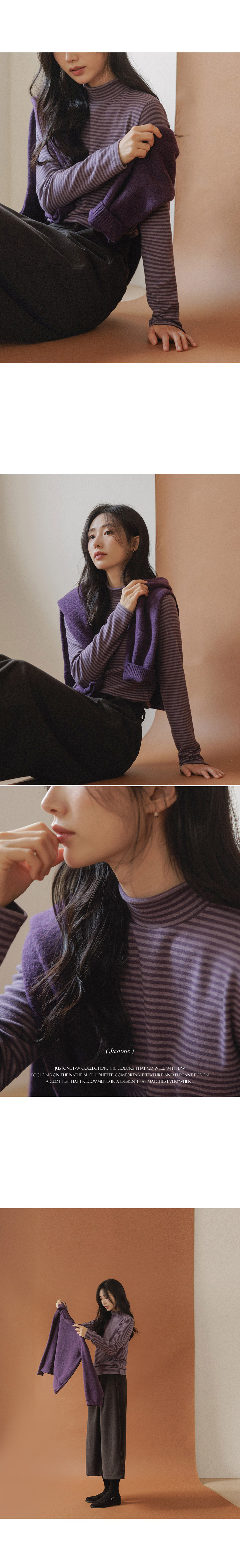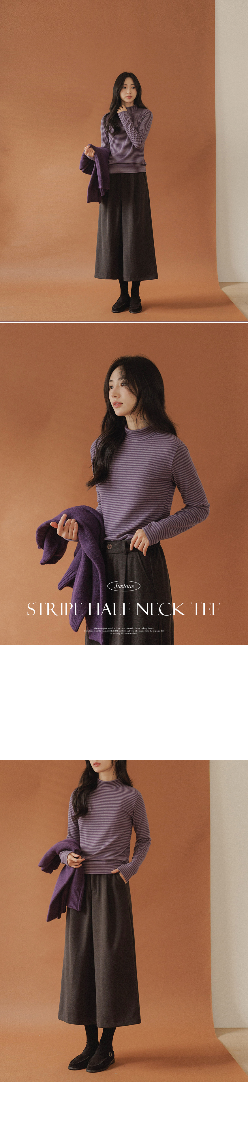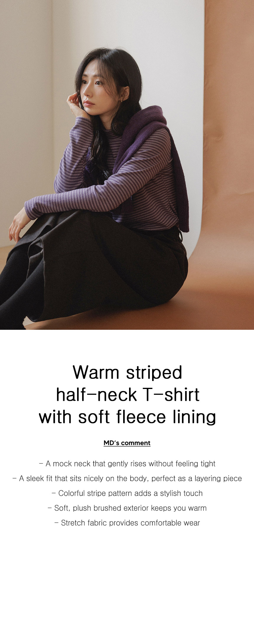 5DA32232NN_Soft Fleece-Lined Striped Half-neck T-Shirt