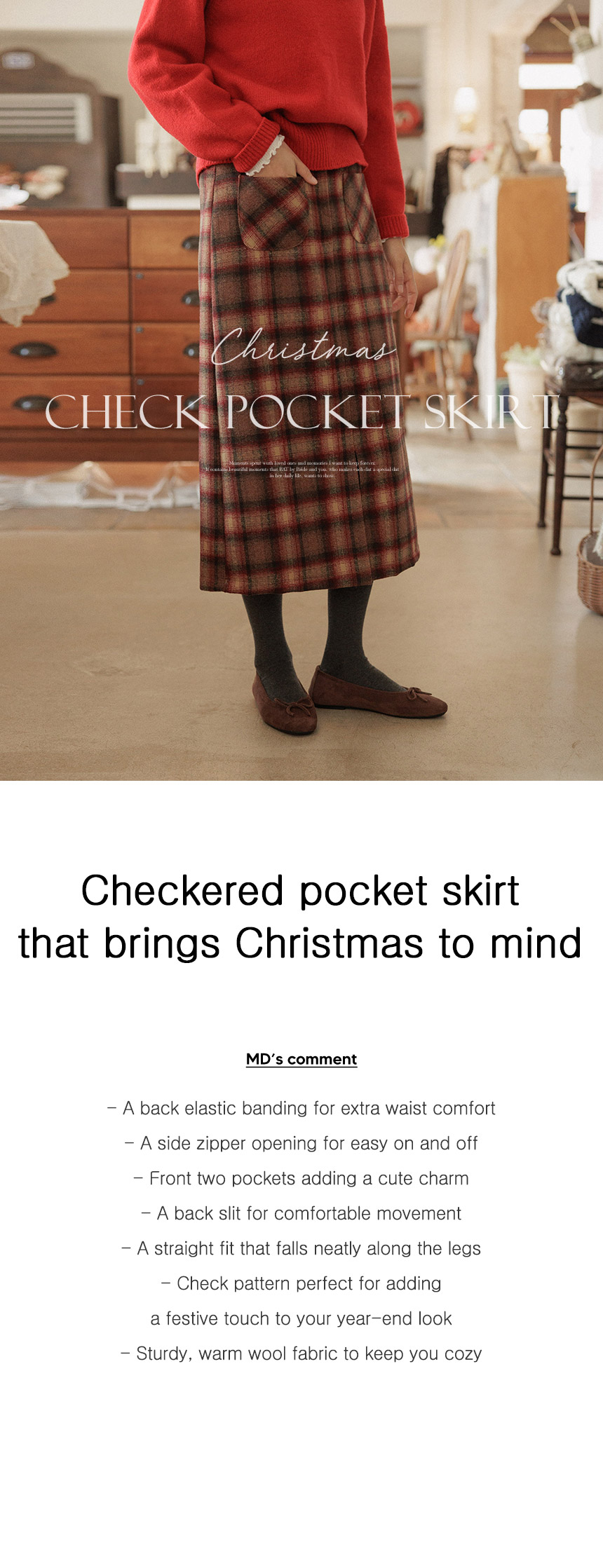 5DA32195CW_Christmas Checkered Pocket Skirt