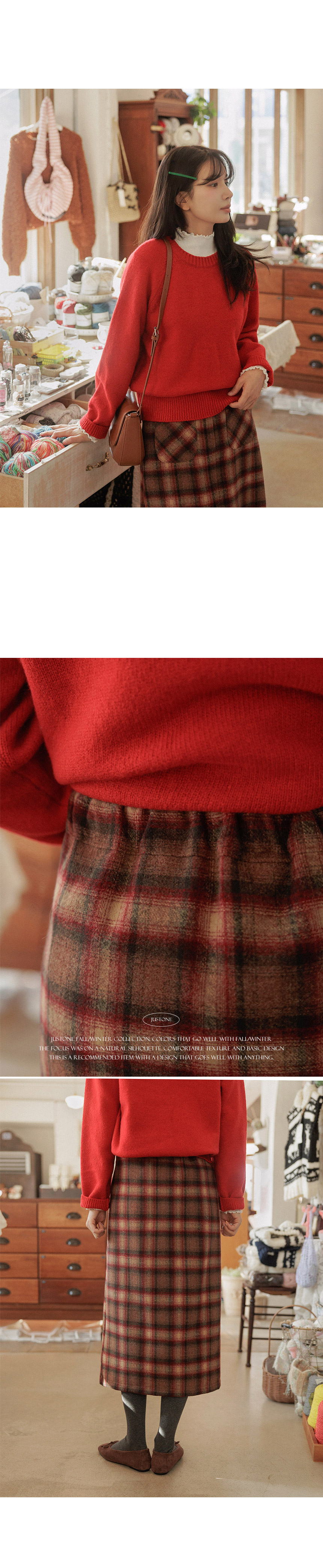 This checkered skirt is perfect for a chic year-end look! Its straight fit creates a slimming effect for your lower body, while the thick, durable wool fabric keeps you cozy and warm all season long.