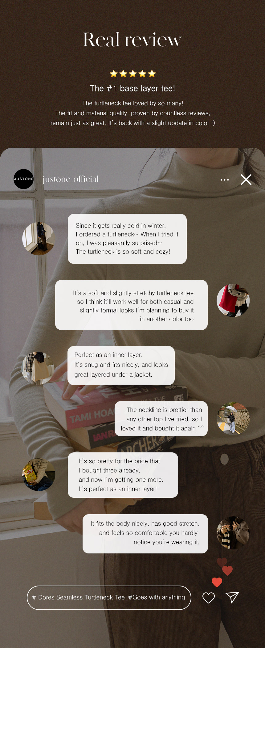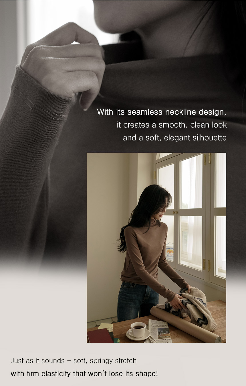 This seamless turtleneck fleece neckline has a comfortable and natural feel. And the material stretches flexibly, making it comfortable to wear!