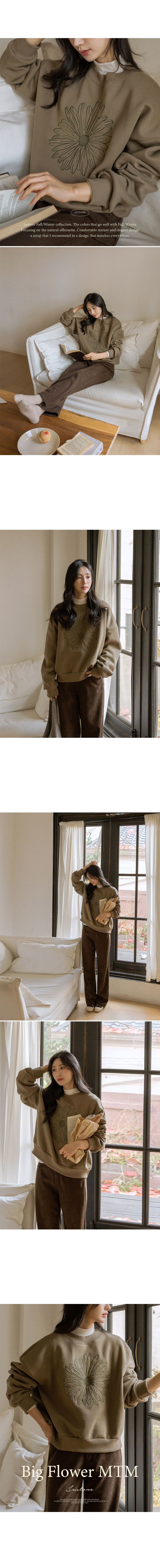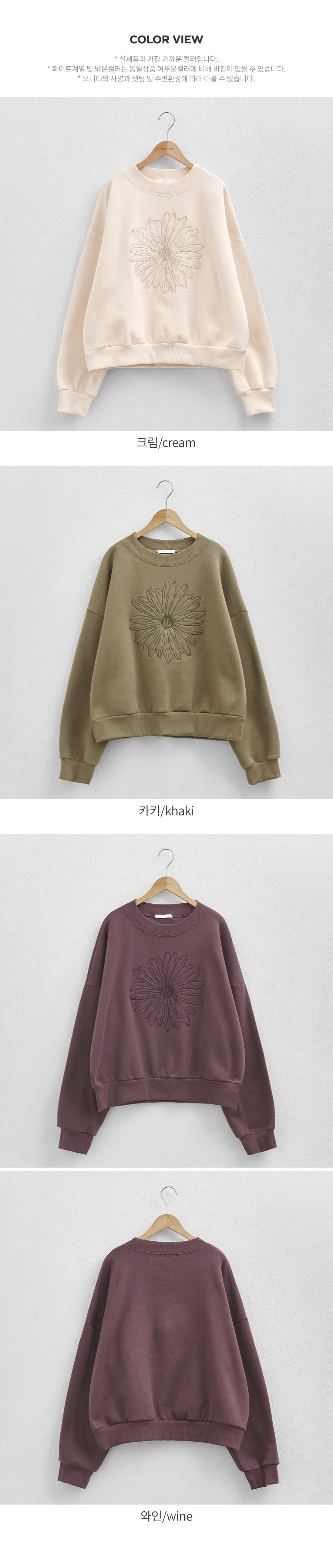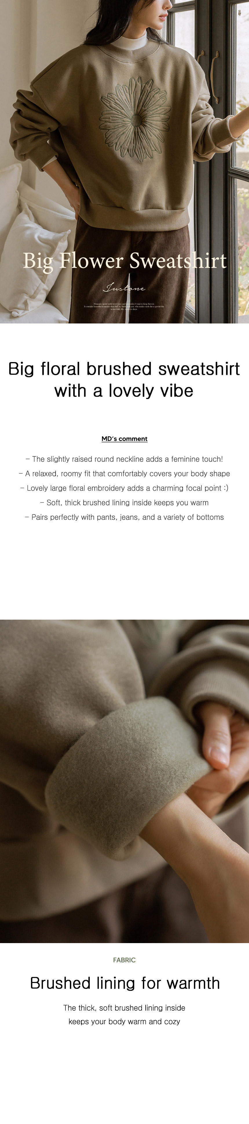 6DA32277CW_Big Flower Brushed Round Neck Sweatshirt