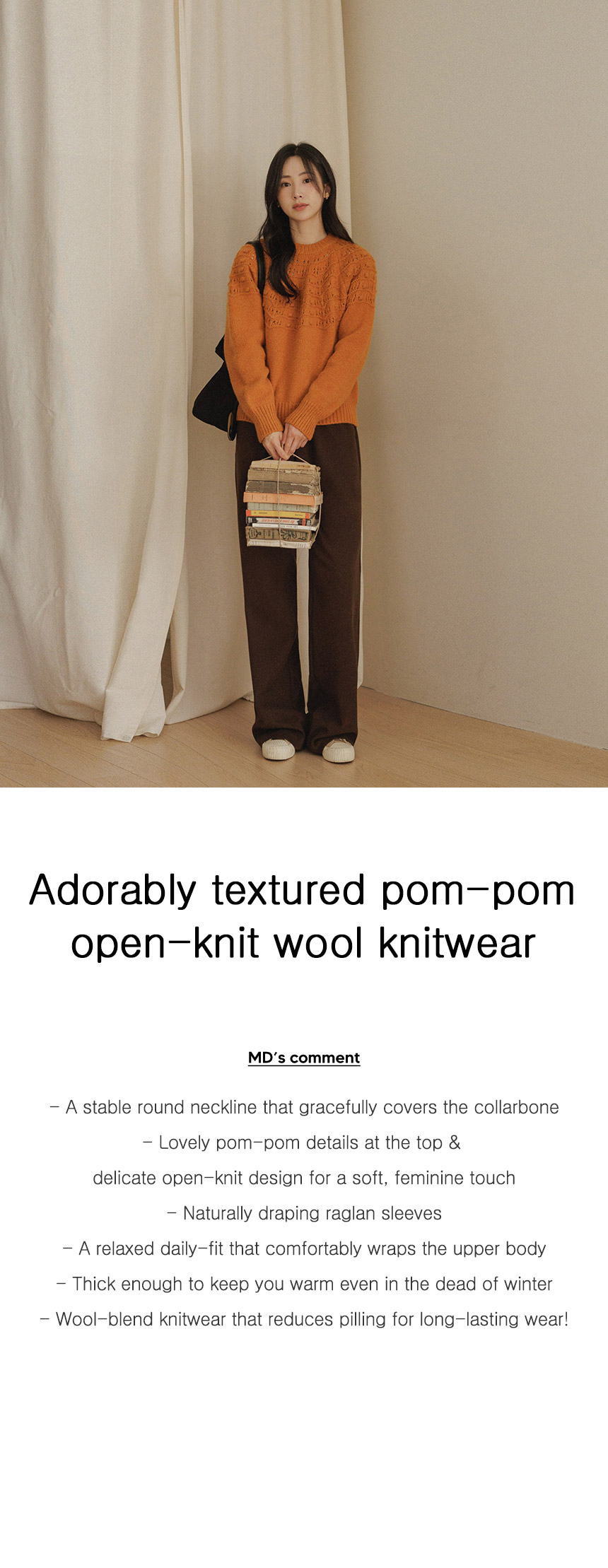 5DA32255NN_Pom-pom Openwork Thick Wool Knitwear