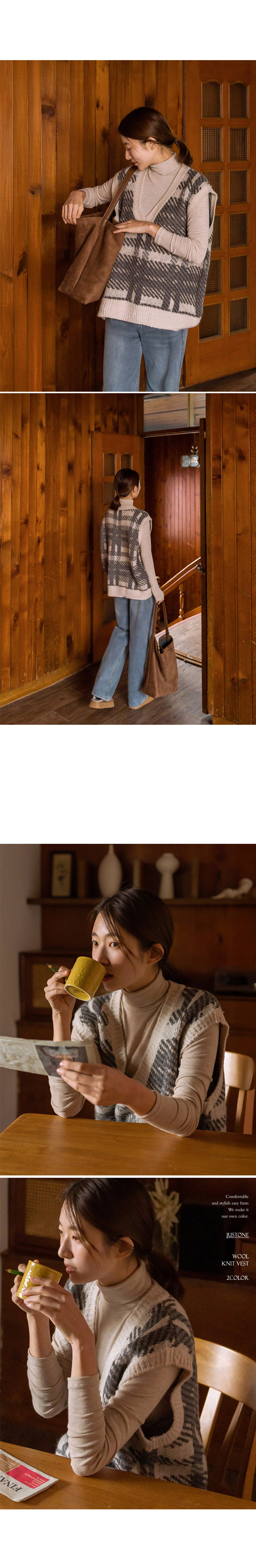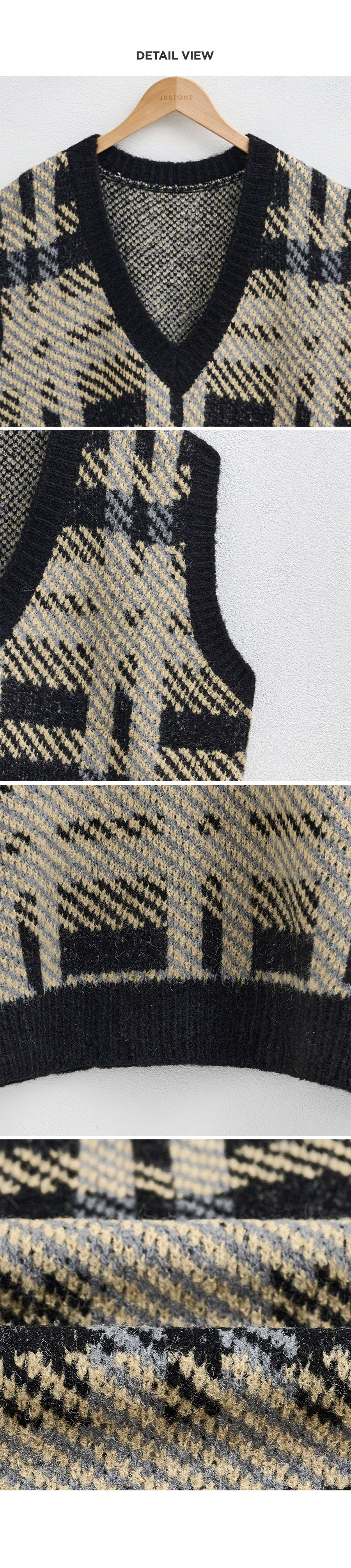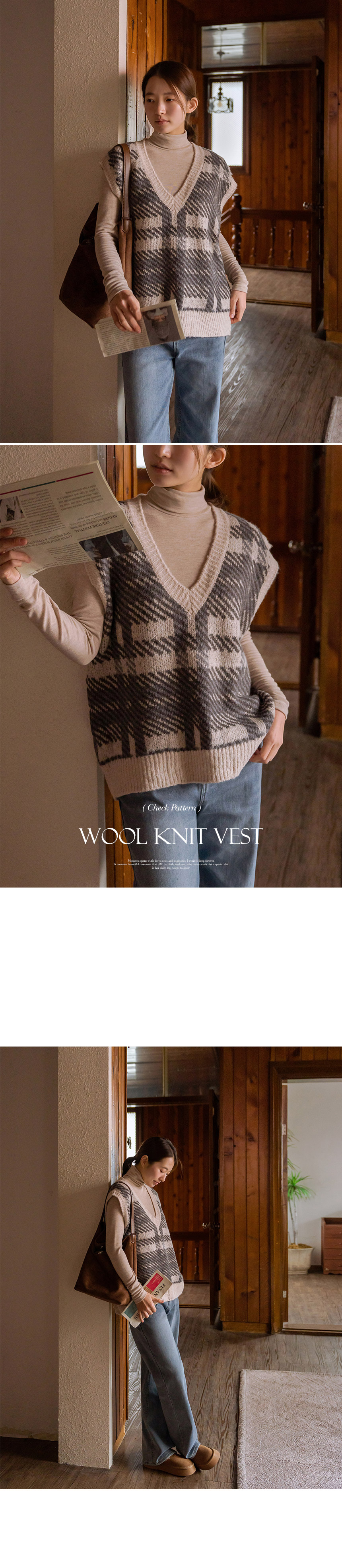5DA32282CW_Checked Pattern Oversized Wool Knit Vest