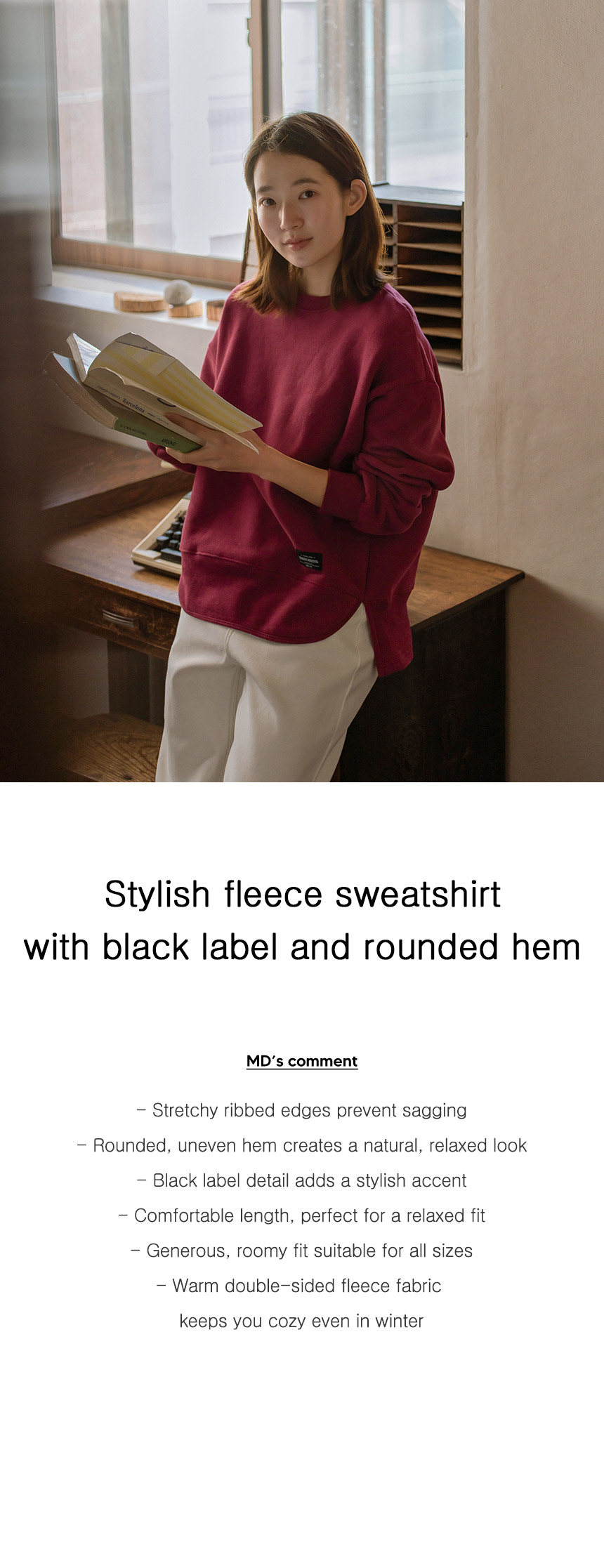 The unbalanced hemline creates a relaxed silhouette without being too tight. The black label detail adds a chic touch to this sweatshirt, and the thick wool fleece fabric keeps you warm even in the middle of winter.
