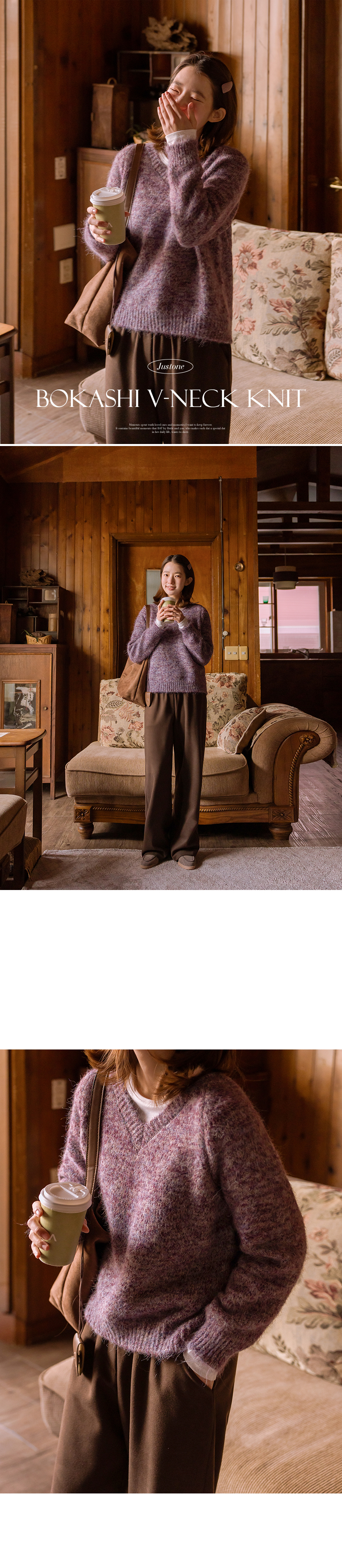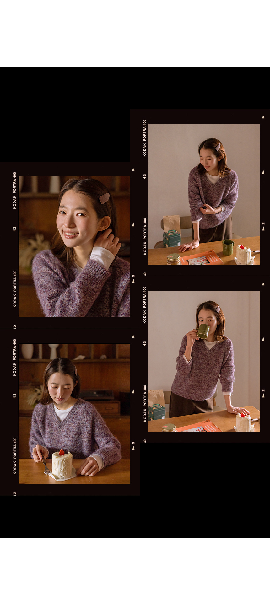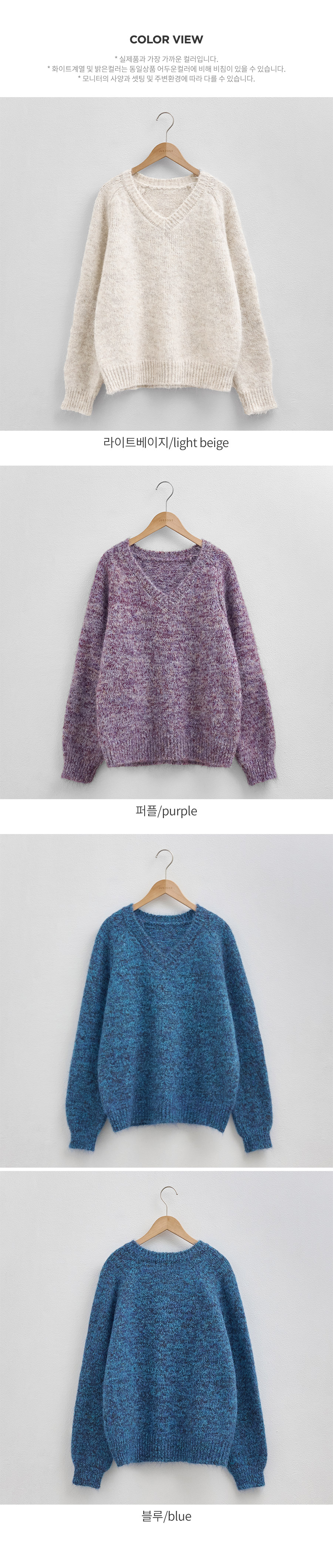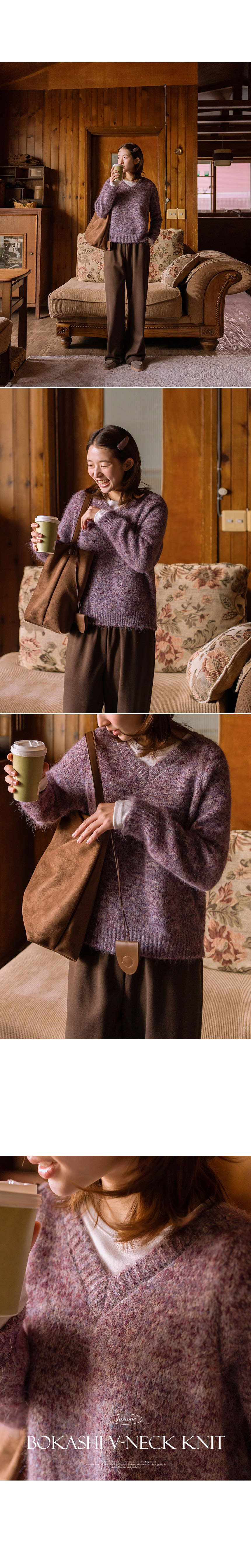 5DA32292NN_Mixed Boucle V-Neck Knitwear