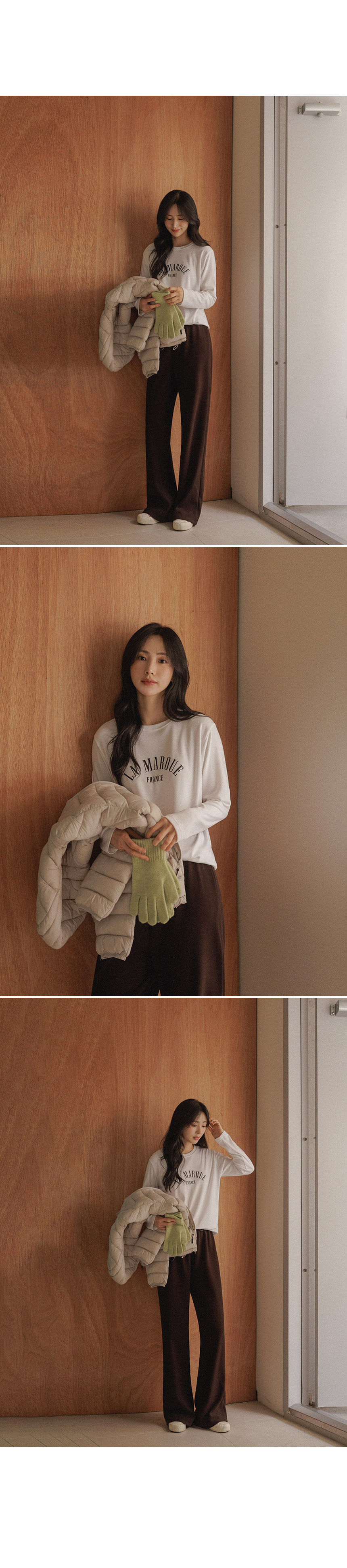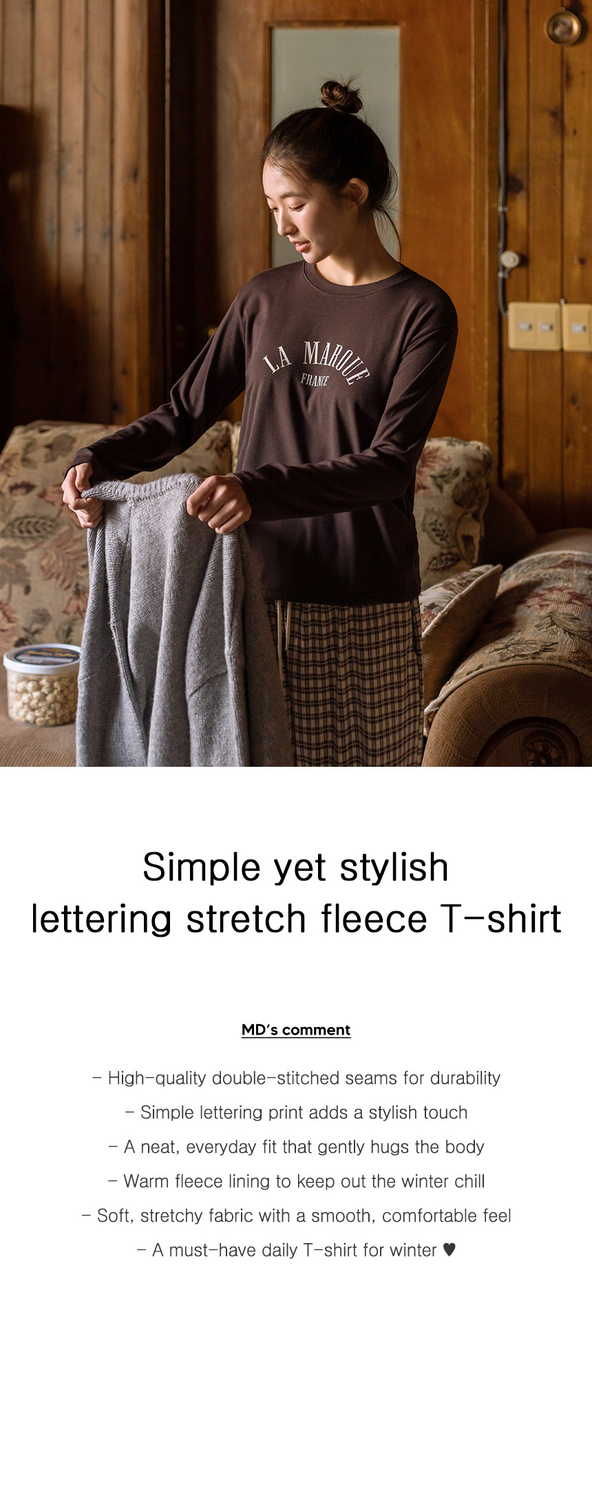 A long-sleeved tee with a simple lettered print! The inner lining provides warmth, and the soft, smooth spandex fabric makes it incredibly comfortable.