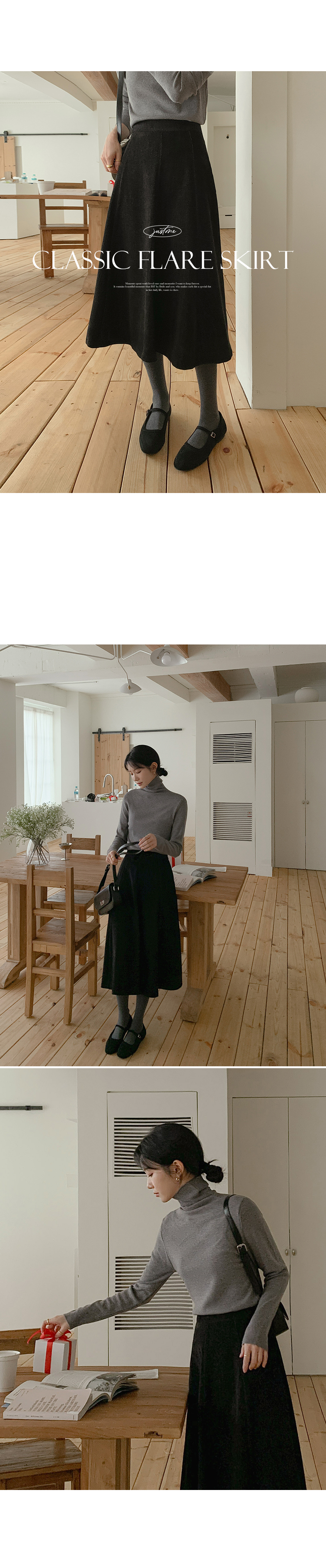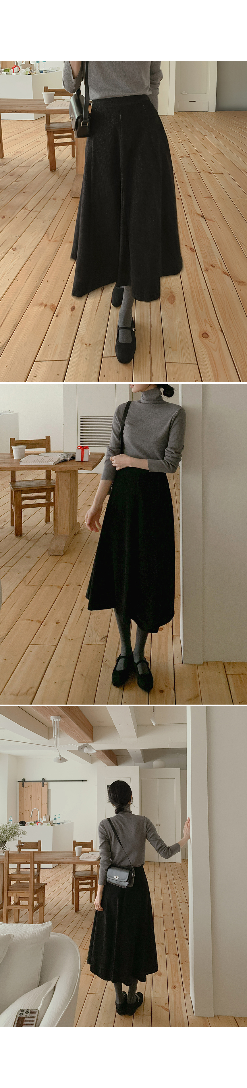 This skirt exudes a luxurious feel with its velvet-like fabric, and the flare cuts add a feminine touch that moves gracefully with every step. It provides full coverage for the lower body, and the waistband ensures a comfortable fit.
