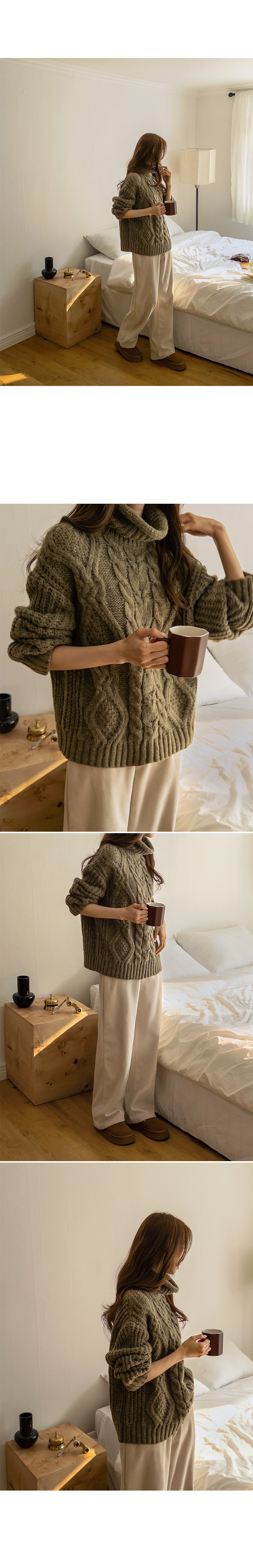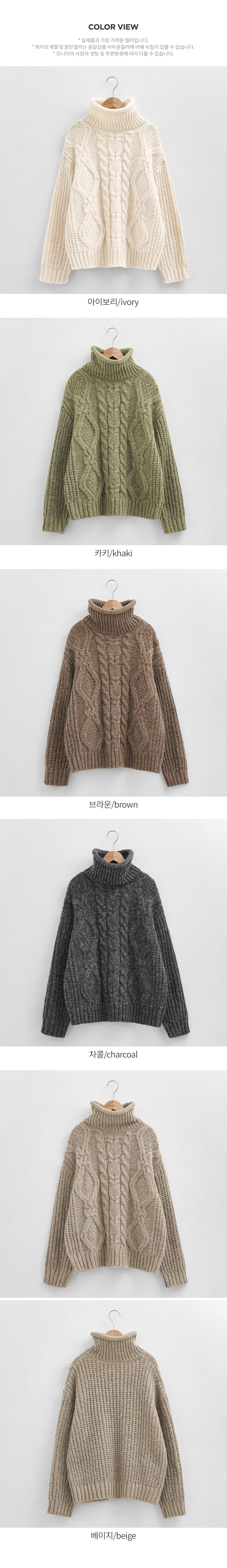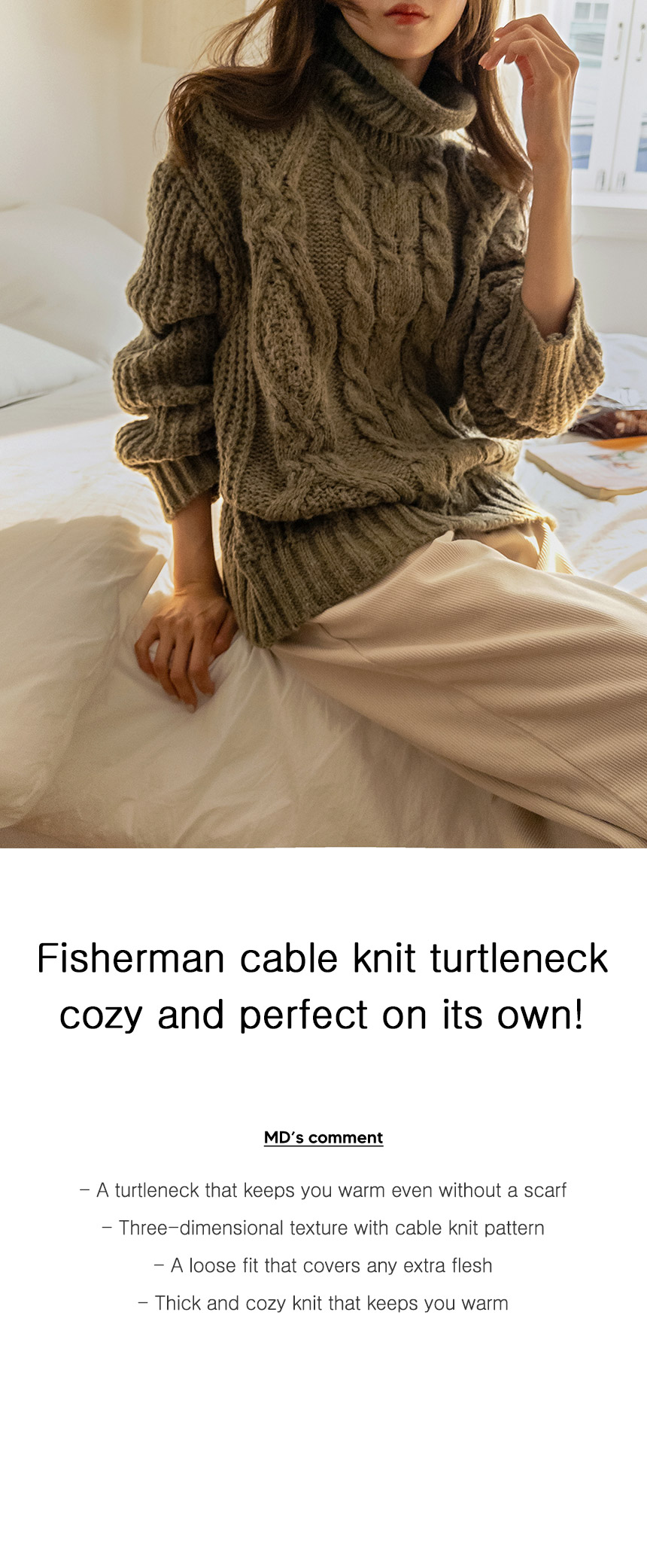 6DA32321CW_Fisherman Rib Cable Turtleneck Knitwear